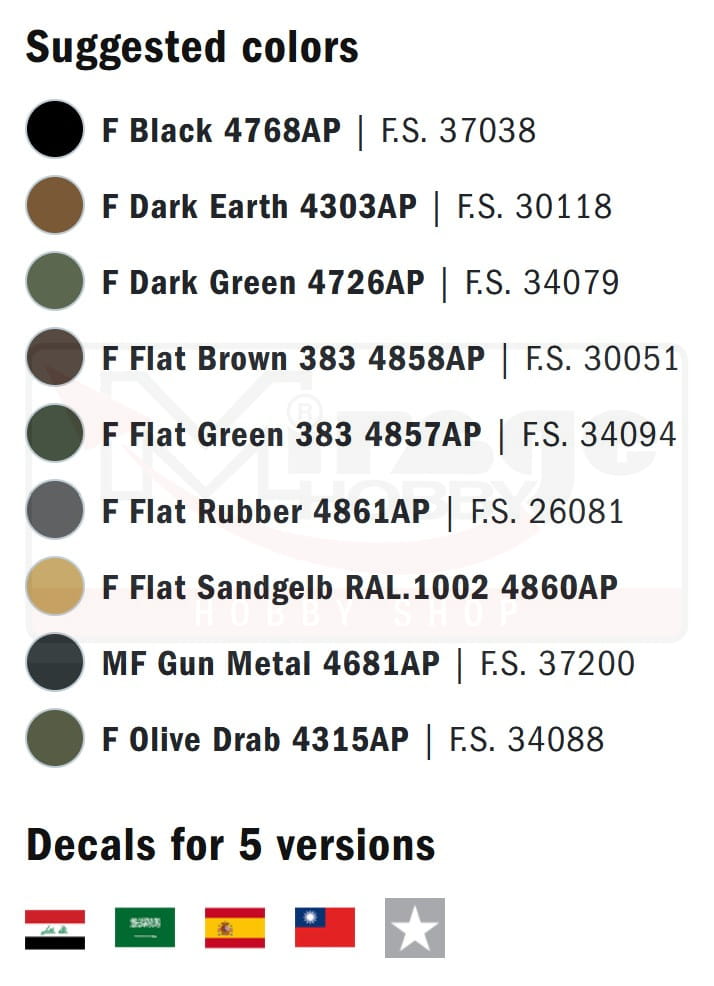 LINK-AND-LENGTH TRACK - PLASTIC MESH - SUPER DECALS FOR 5 VERSIONS - COLOR INSTRUCTIONS SHEET