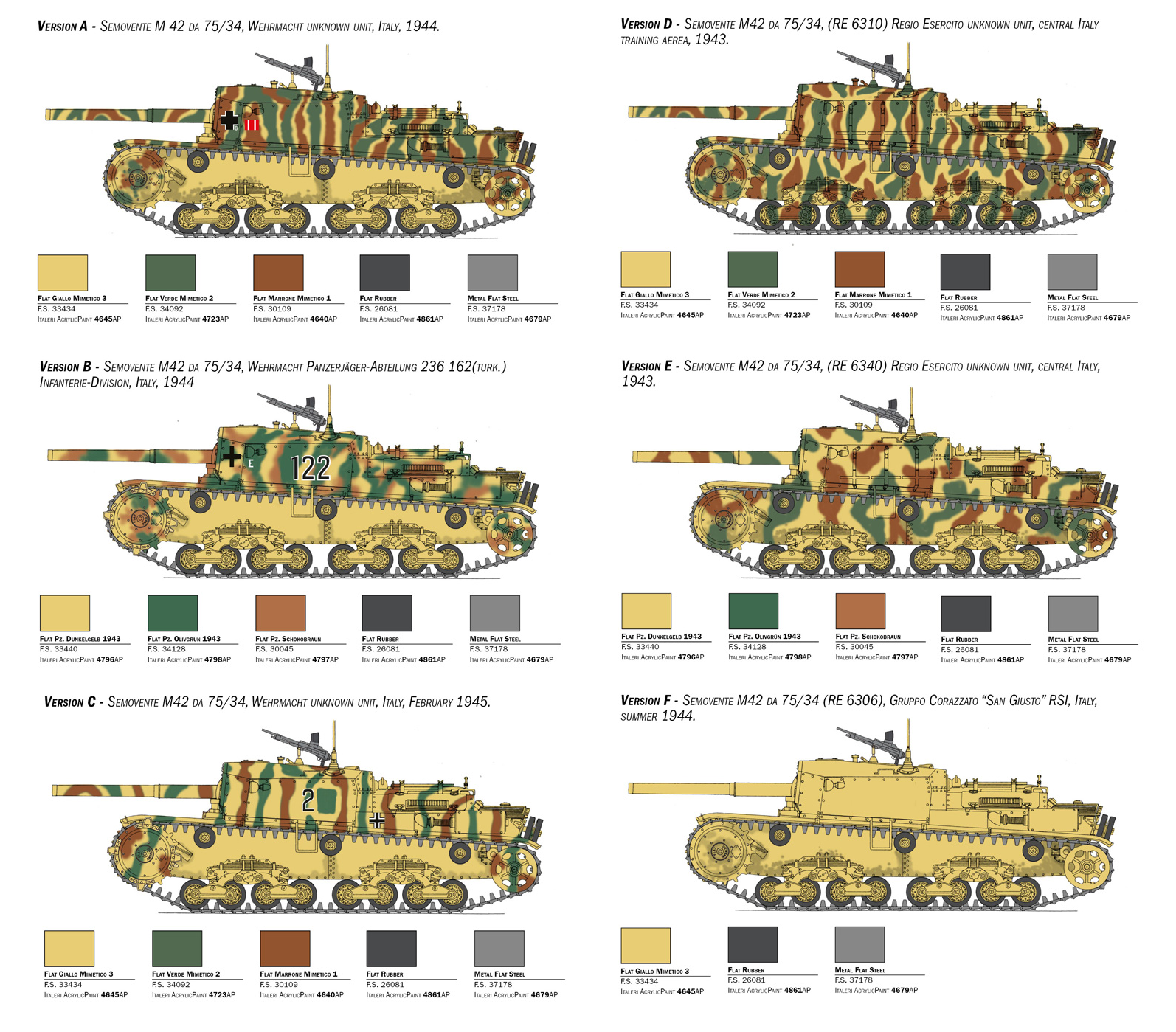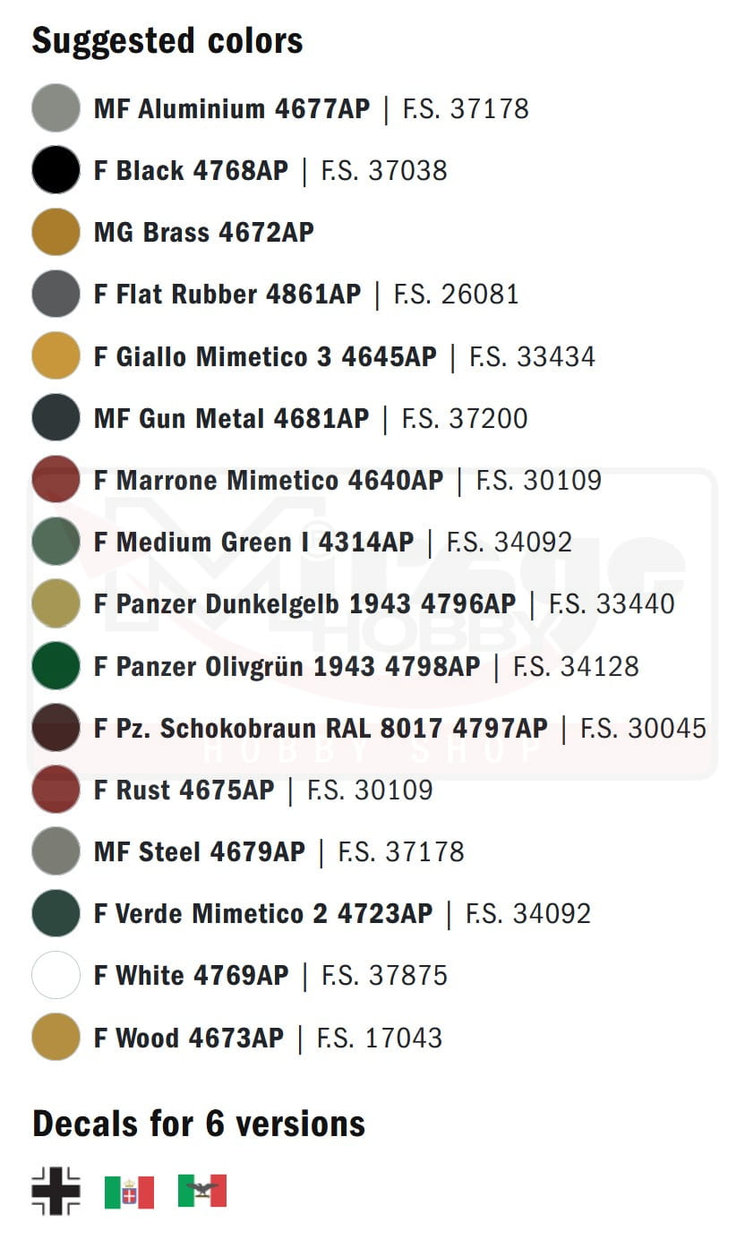 NEW PARTS - METAL GUN BARREL - NEW GLUABLE RUBBER TRACKS - PHOTO ETCHED FRET - DECALS FOR 6 VERSIONS - COLORS INSTRUCTION SHEET