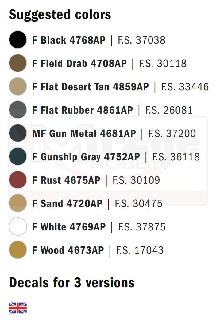 DECALS SHEET FOR 3 VERSIONS - NEW GLUABLE RUBBER TRUCK - COLOR INSTRUCTION SHEET
