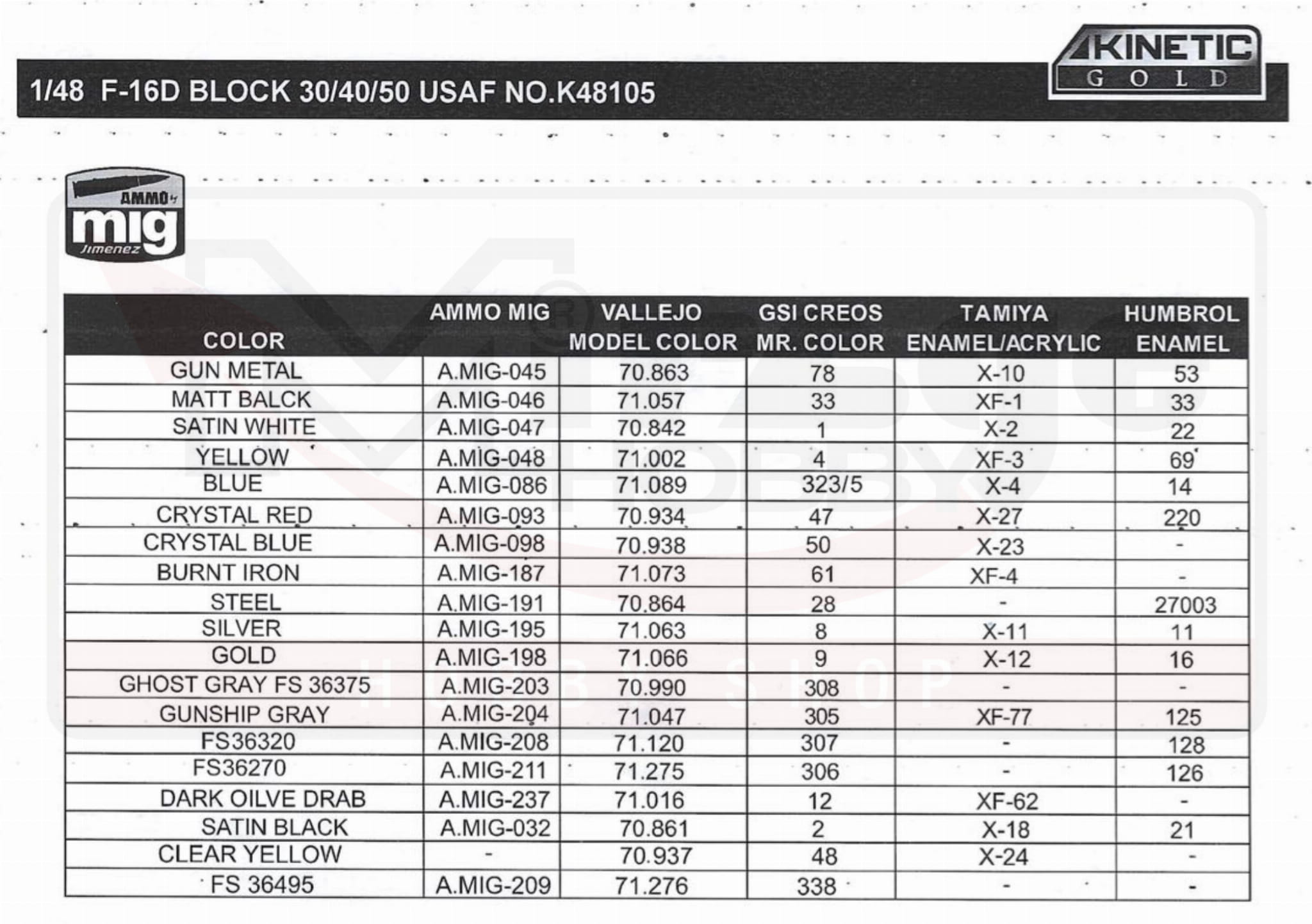 KINETIC 48105 1:48 F-16D Block 30/40/50 USAF