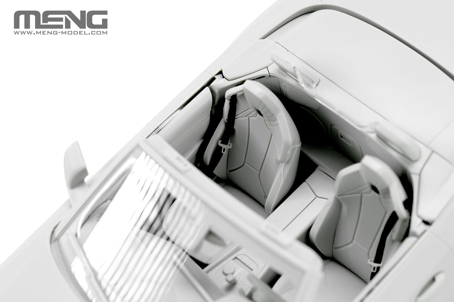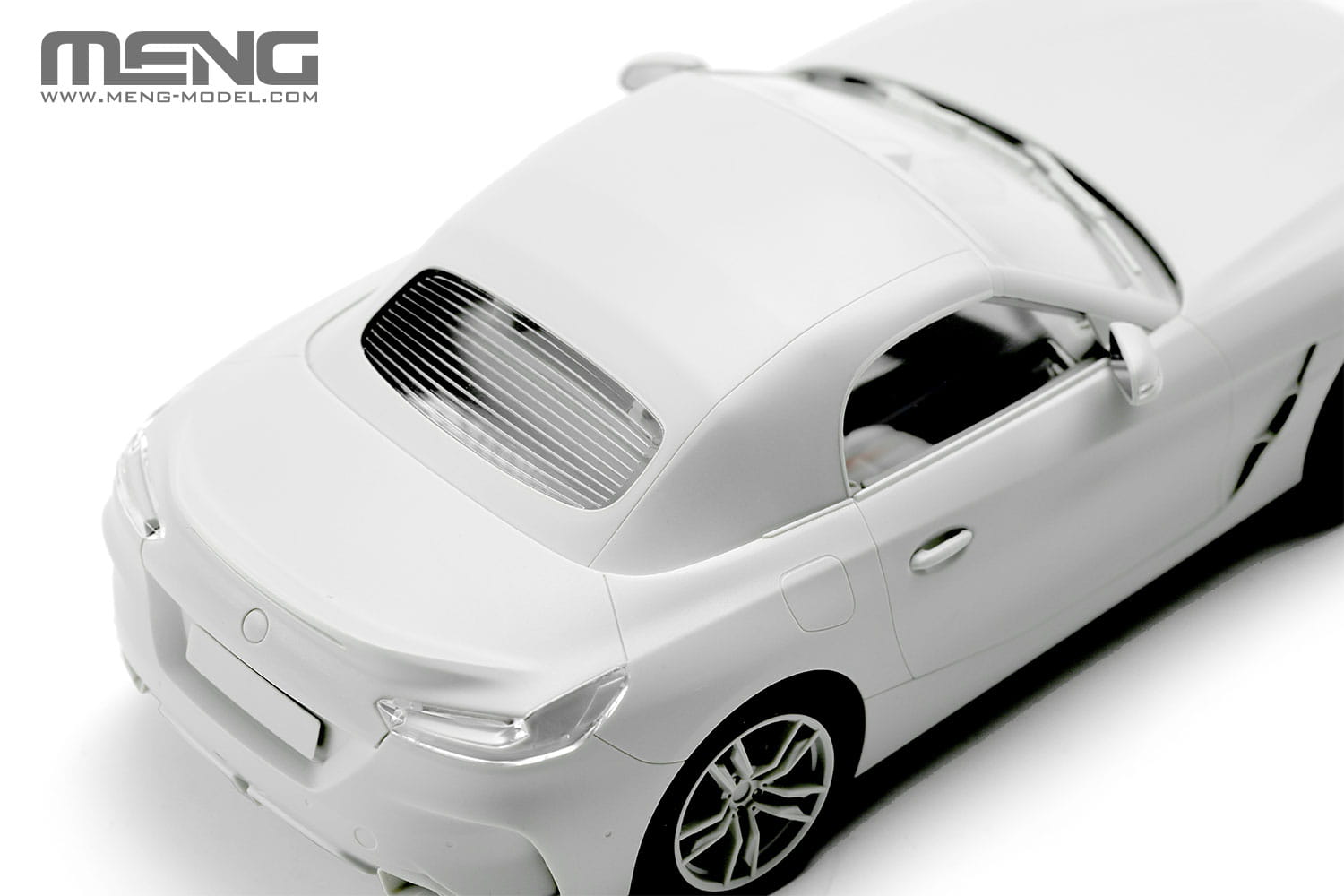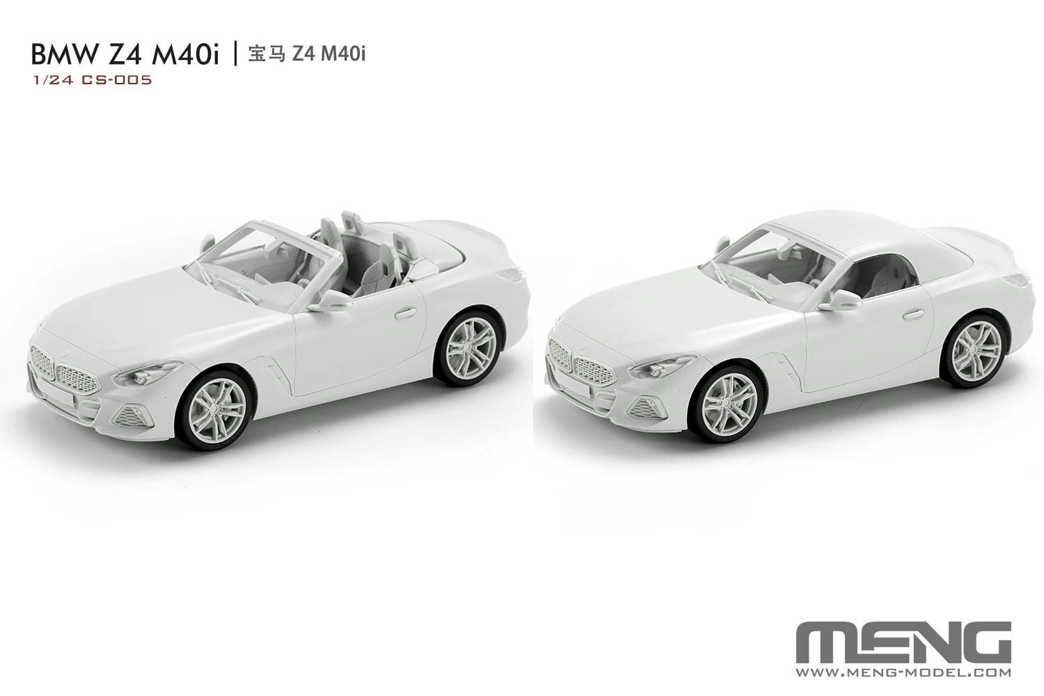 This MENG CS-005 BMW Z4 M40i is a 1/24 plastic model kit officially licensed by BMW. The finished model will be 180mm long, 84mm wide and 55mm high. This kit includes stainless steel PE parts, safety belts made of special fabric material and pre-cut painting mask stickers. The model’s soft top can be built in the raised or lowered position.