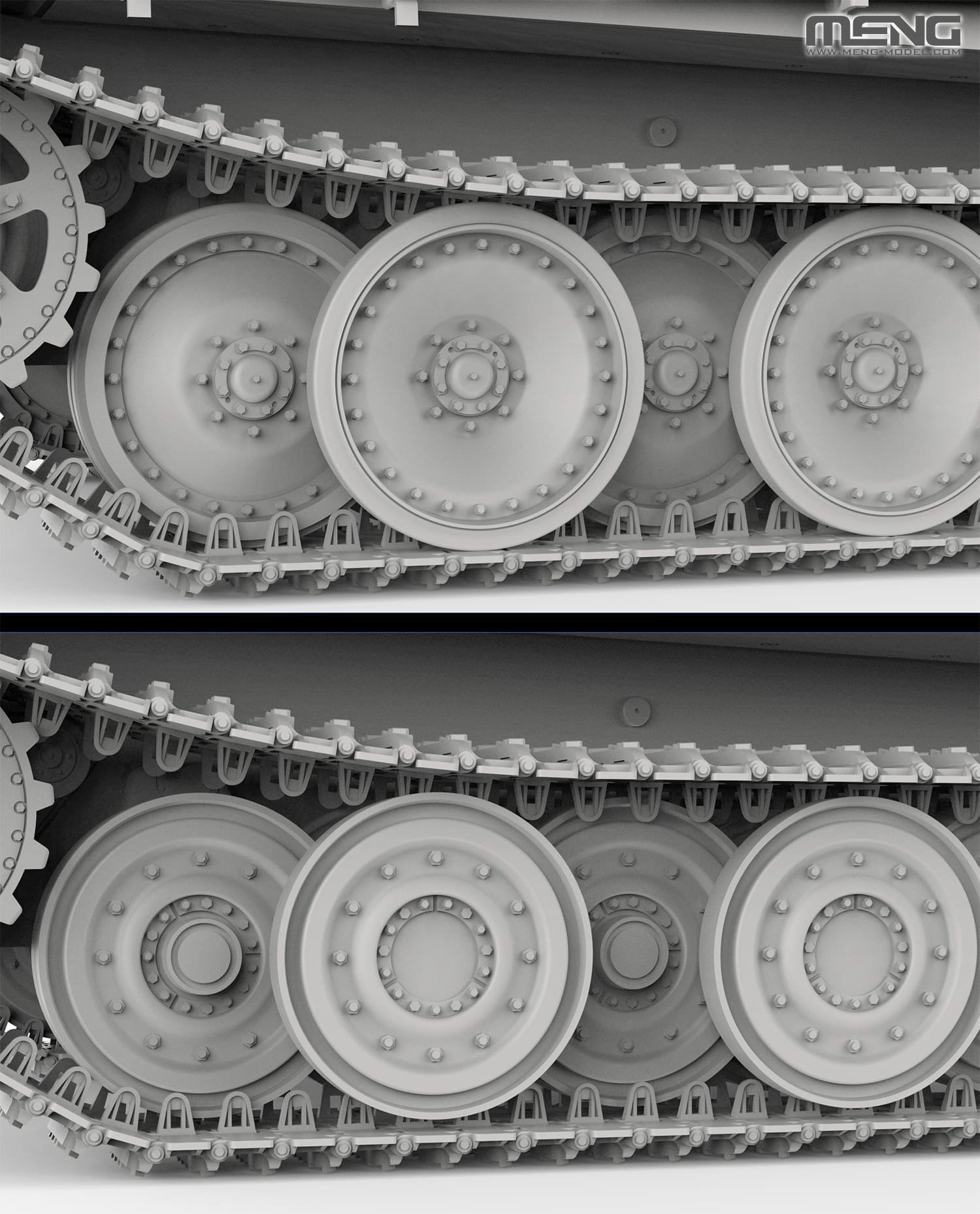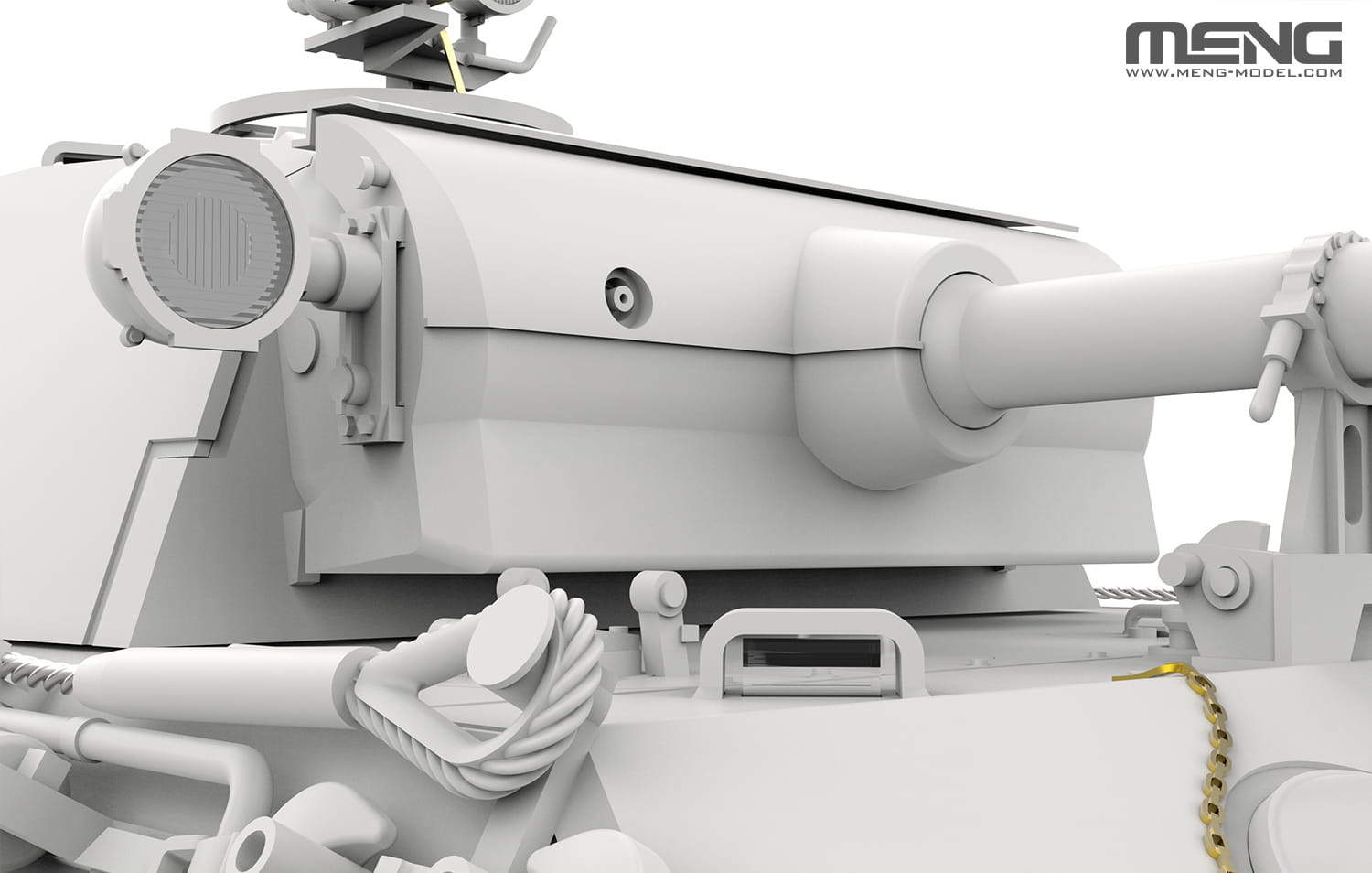The latest MENG TS-054 German Medium Tank Sd.Kfz.171 Panther Ausf.G Late w/ FG1250 Active Infrared Night Vision System model will be 263mm long and 93.6mm wide after assembly. This kit includes precision PE parts, metal cables, metal side skirts and four paint schemes. Hot rolling, cast, welding and cutting textures on the hull surfaces are realistically replicated.