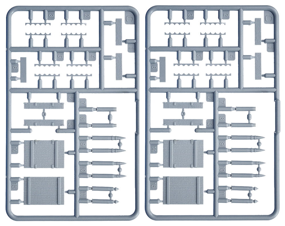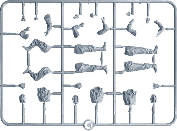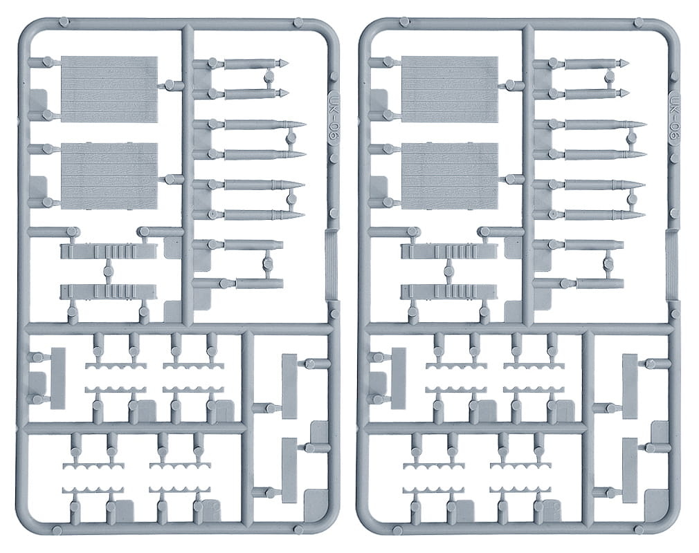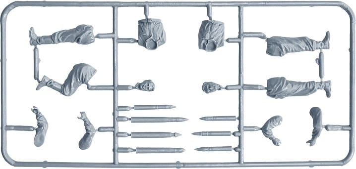 Zestaw zawiera 5 niezmontowanych i niepomalowanych figurek z 4 pudełkami z amunicją.