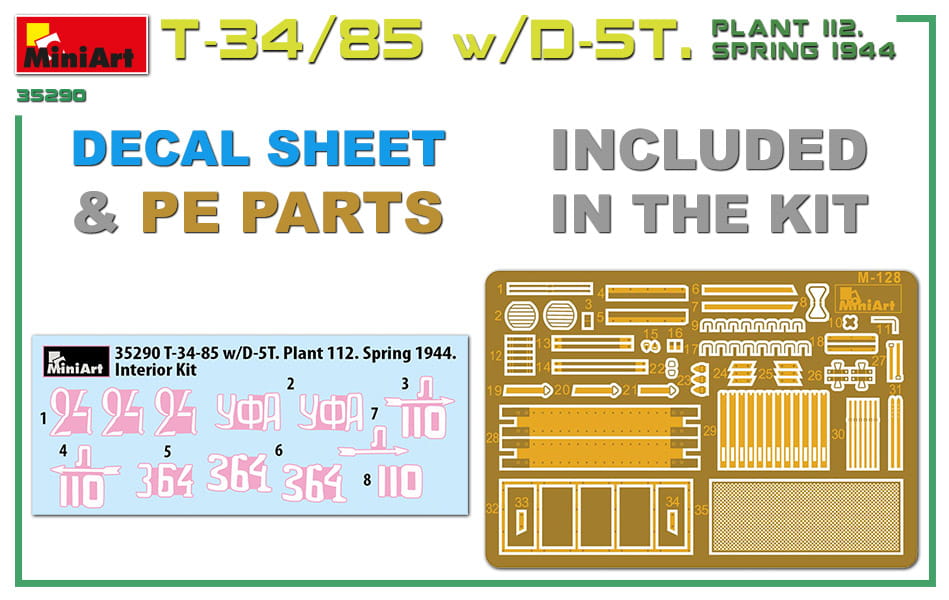 MINIART 35290 1:35 T-34/85 w/D-5T Plant 112. Spring 1944. Interior Kit