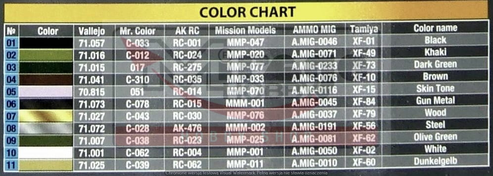 Zestaw zawiera modele czterech figurek, min, wykrywaczy, broni piechoty i wyposażenia.