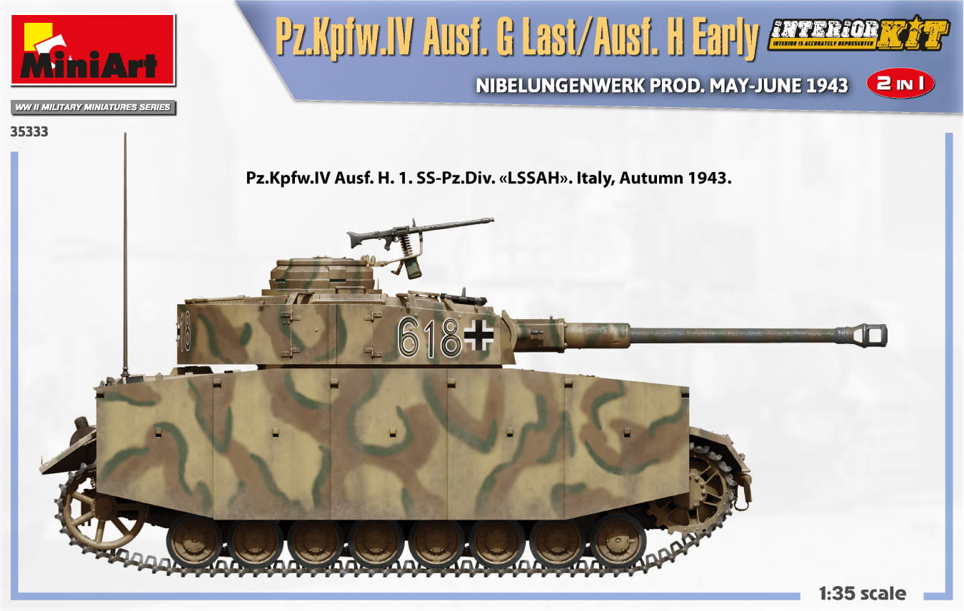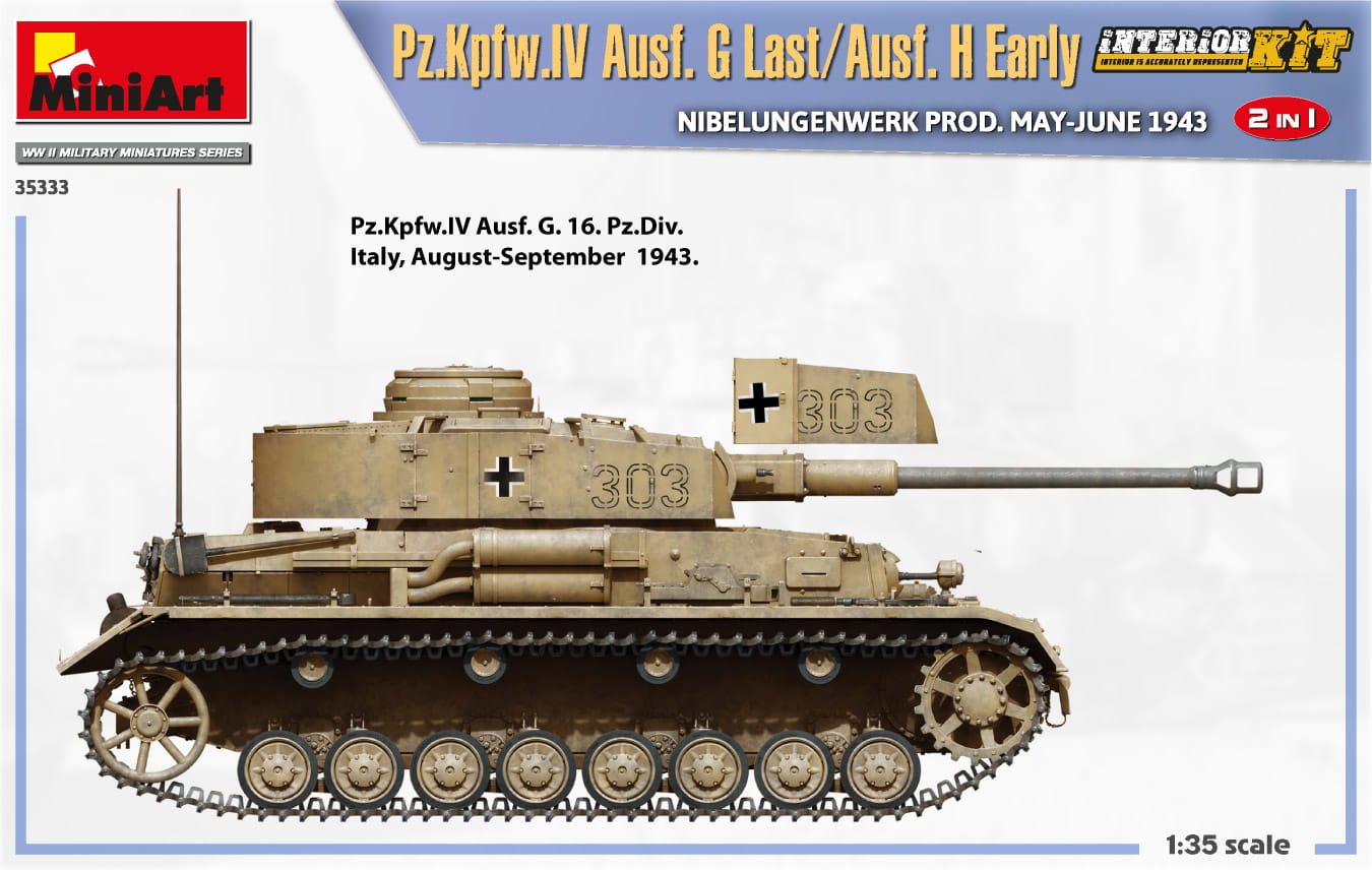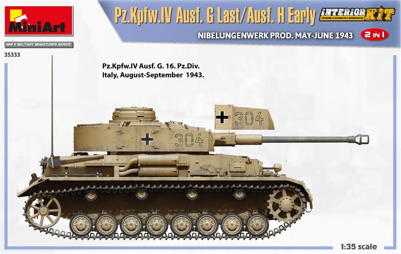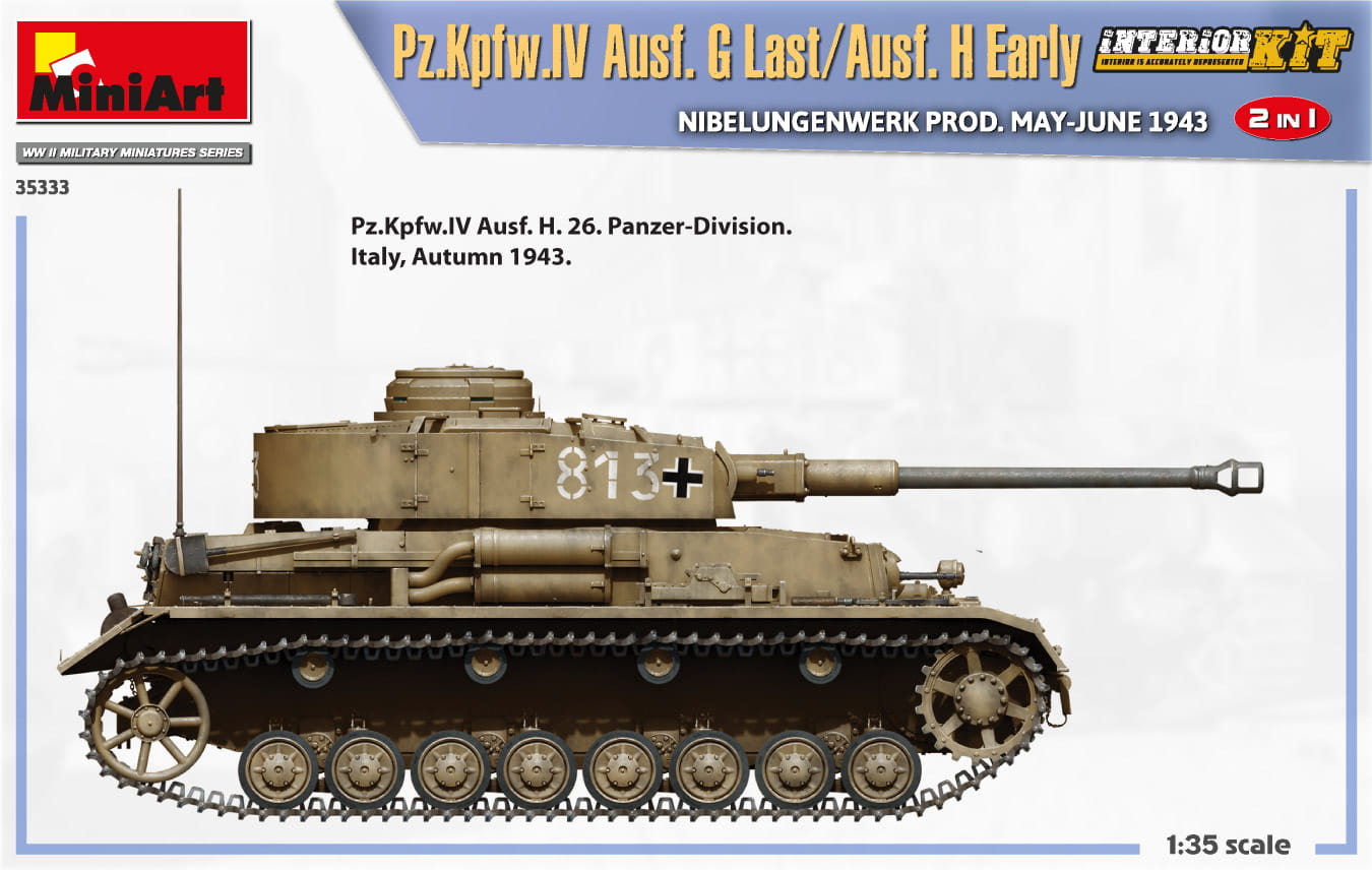 MINIART 35333 1:35 Pz.Kpfw.IV Ausf.G Last/Ausf. H Early. NIBELUNGENWERK Prod. May-June 1943. 2in1 [INTERIOR KIT]