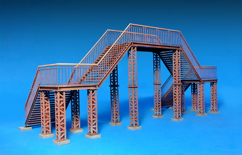 This kit contains unassembled and unpainted model of a pidestrian bridge.