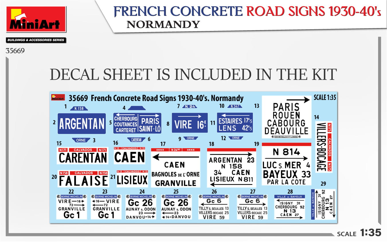 MINIART 35669 1:35 French Concrete Road Signs 1930-40's. Normandy