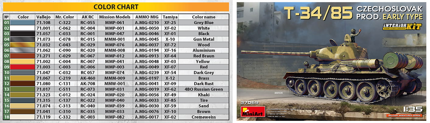 MINIART 37069 1:35 T-34/85 Czechoslovak Prod. Early Type. [INTERIOR KIT]