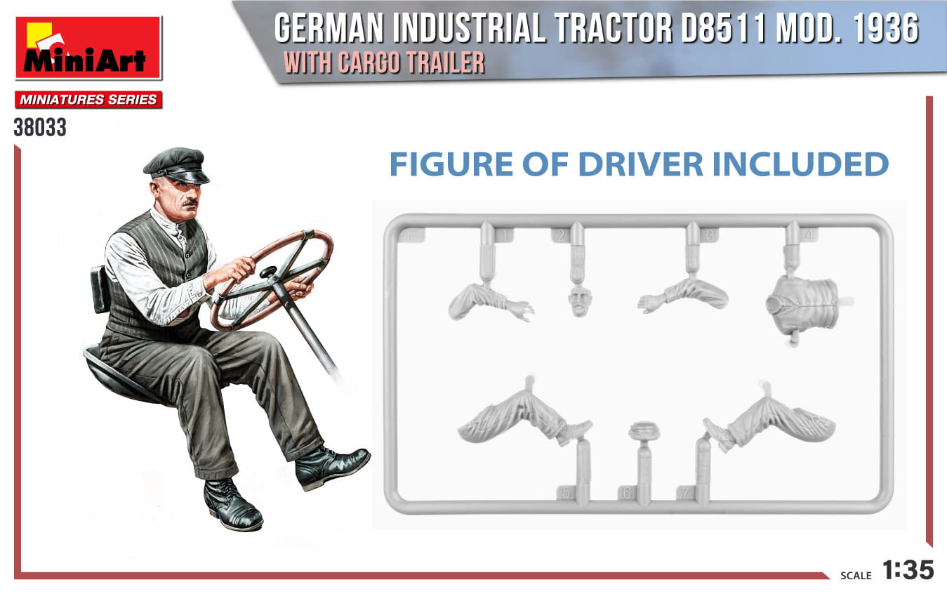 MINIART 38033 1:35 German Industrial TRACTOR D8511 mod. 1936 with Cargo Trailer