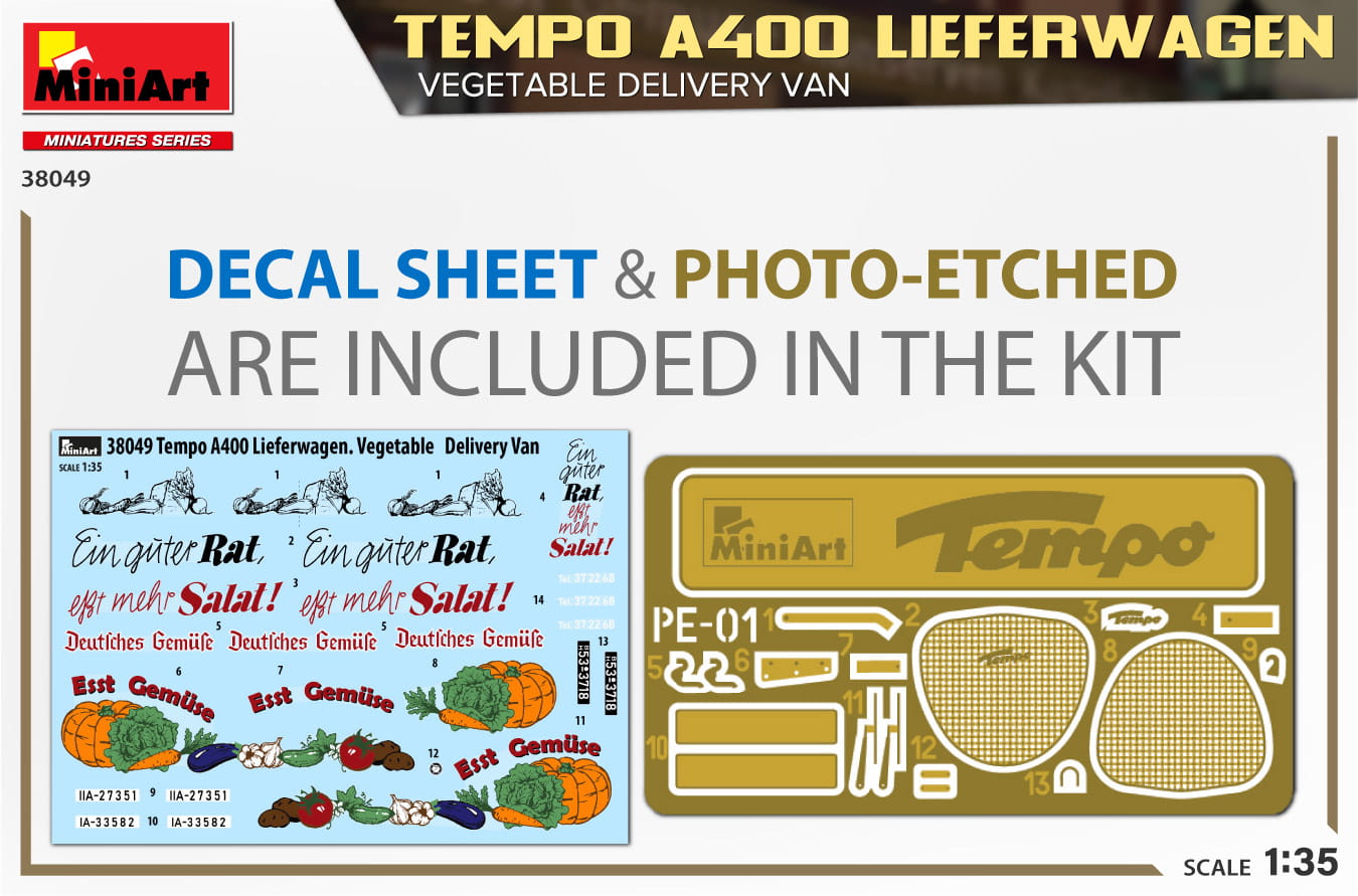 MINIART 38049 1:35 Tempo A400 Lieferwagen Vegetable Delivery Van