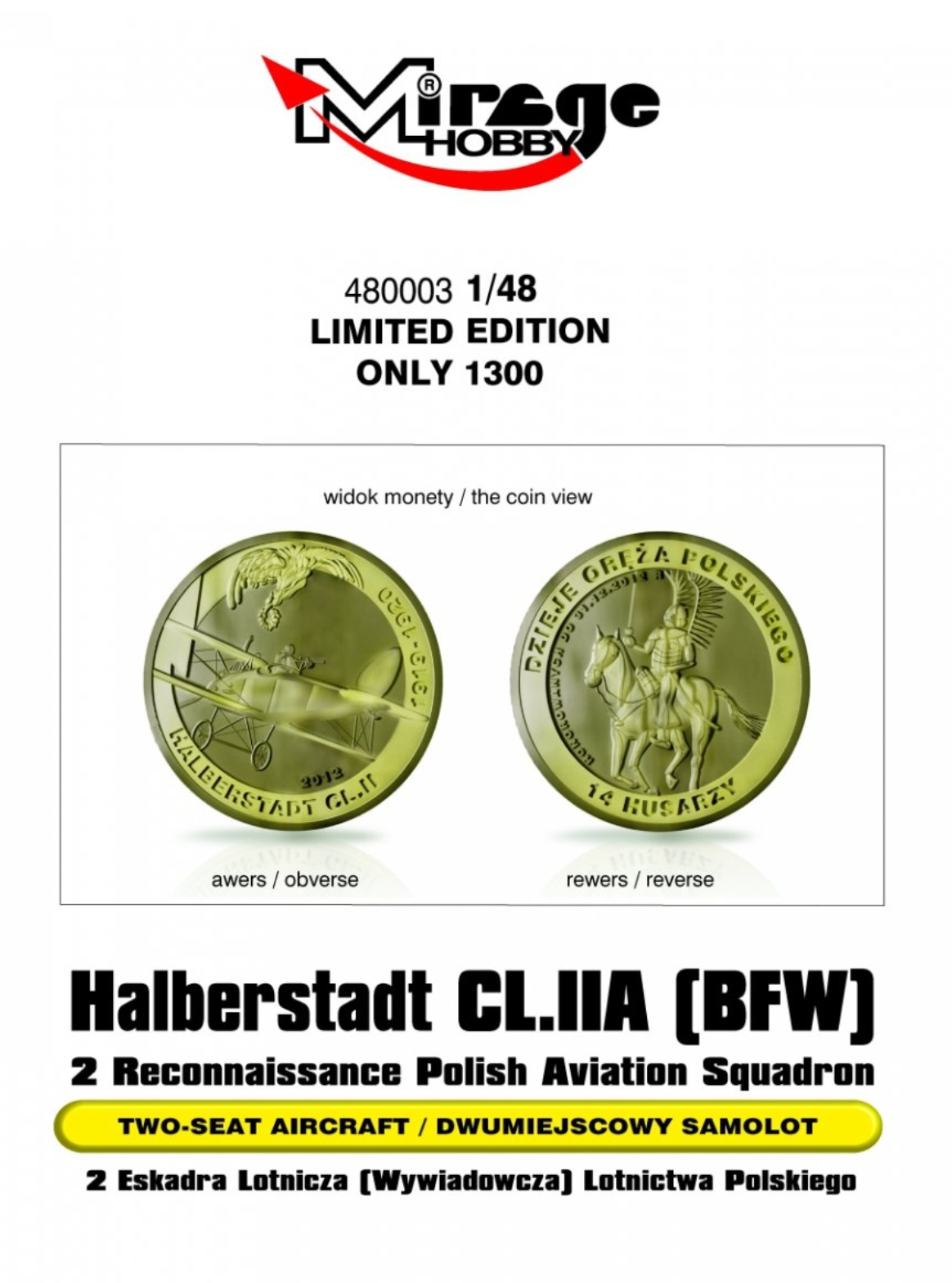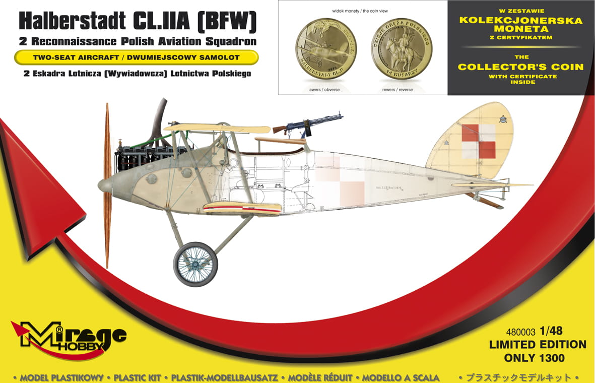 MIRAGE 480003 1:48 Halberstadt CL.IIA (BFW) 2 Reconnaissance Polish Aviation Squadron [Kit + Collector's Coin]