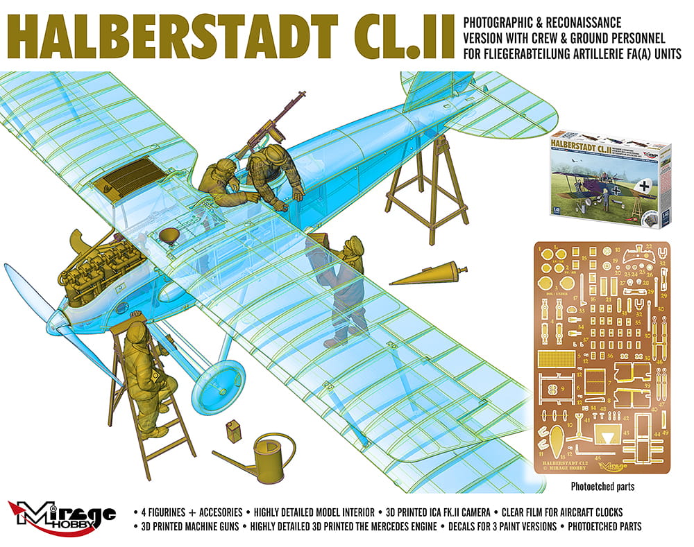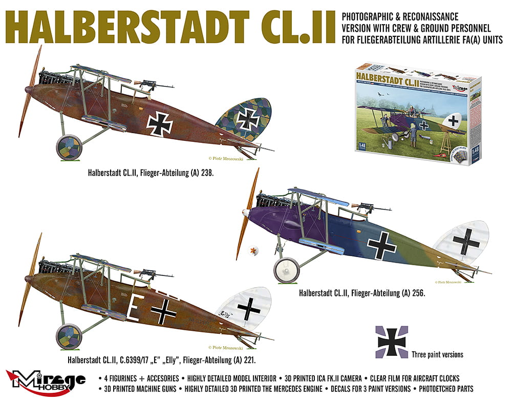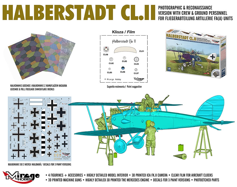 MIRAGE HOBBY 480005 1:48 Halberstadt CL.II Photographic & Reconaissance Version With Crew & Ground Personnel For Fliegerabteilung Artillerie FA(A) Units