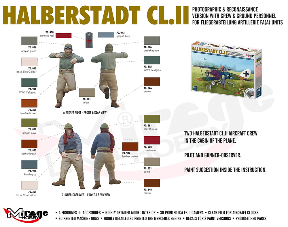 MIRAGE 480005 1:48 Halberstadt CL.II Photographic & Reconaissance Version With Crew & Ground Personnel For Fliegerabteilung Artillerie FA(A) Units