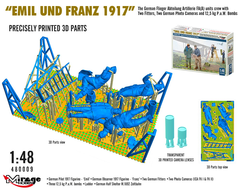 MIRAGE 480009 1:48 WWI German FA(A) Units Crew 'Emil und Franz 1917' w/Equipment