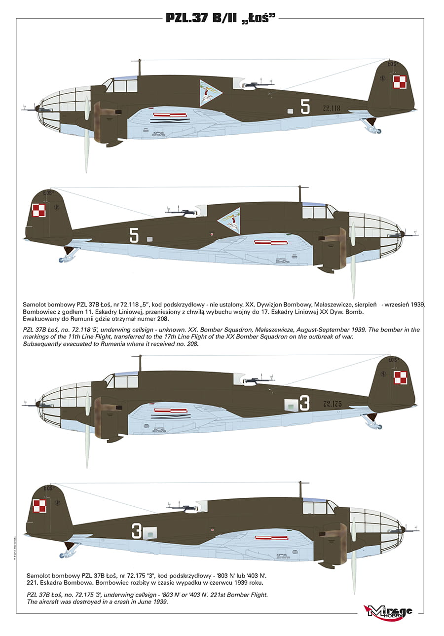 MIRAGE 481310 1:48 PZL.37 B/II ŁOŚ Bomber [second production batch]