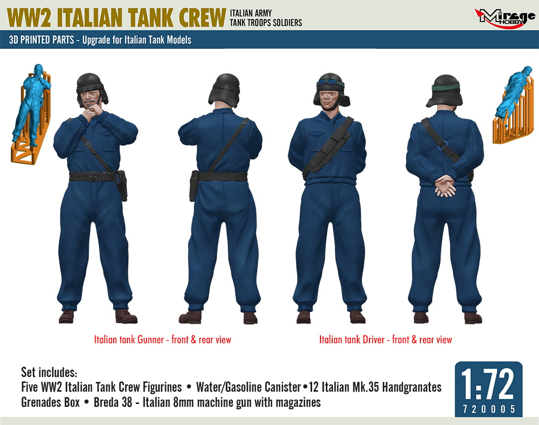 MIRAGE 720005 1:72 WW2 Italian Tank Crew (Italian Army Tank Troops Soldiers)