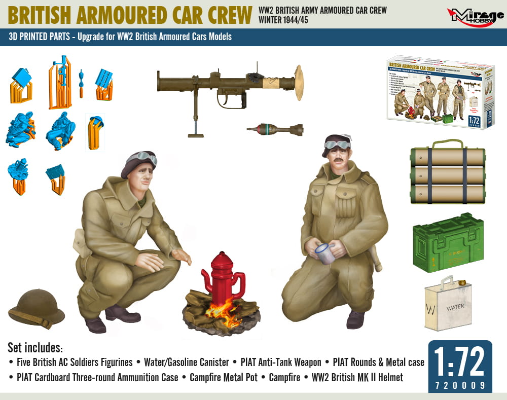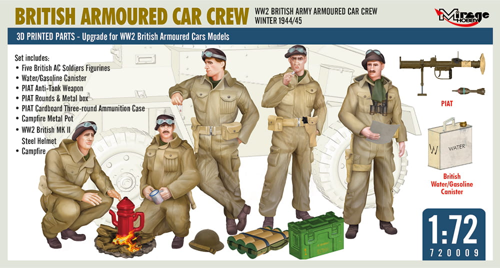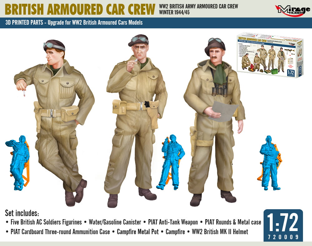 MIRAGE 720009 1:72 WW2 BRITISH ARMY ARMOURED CAR CREW, WINTER 1944/45