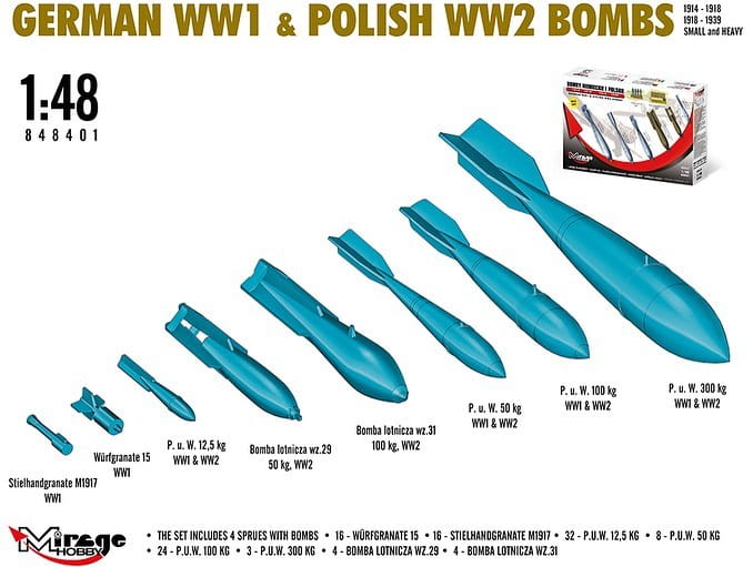 MIRAGE 848401 1:48 German WWI & Polish WWII Bombs [MAX SET]