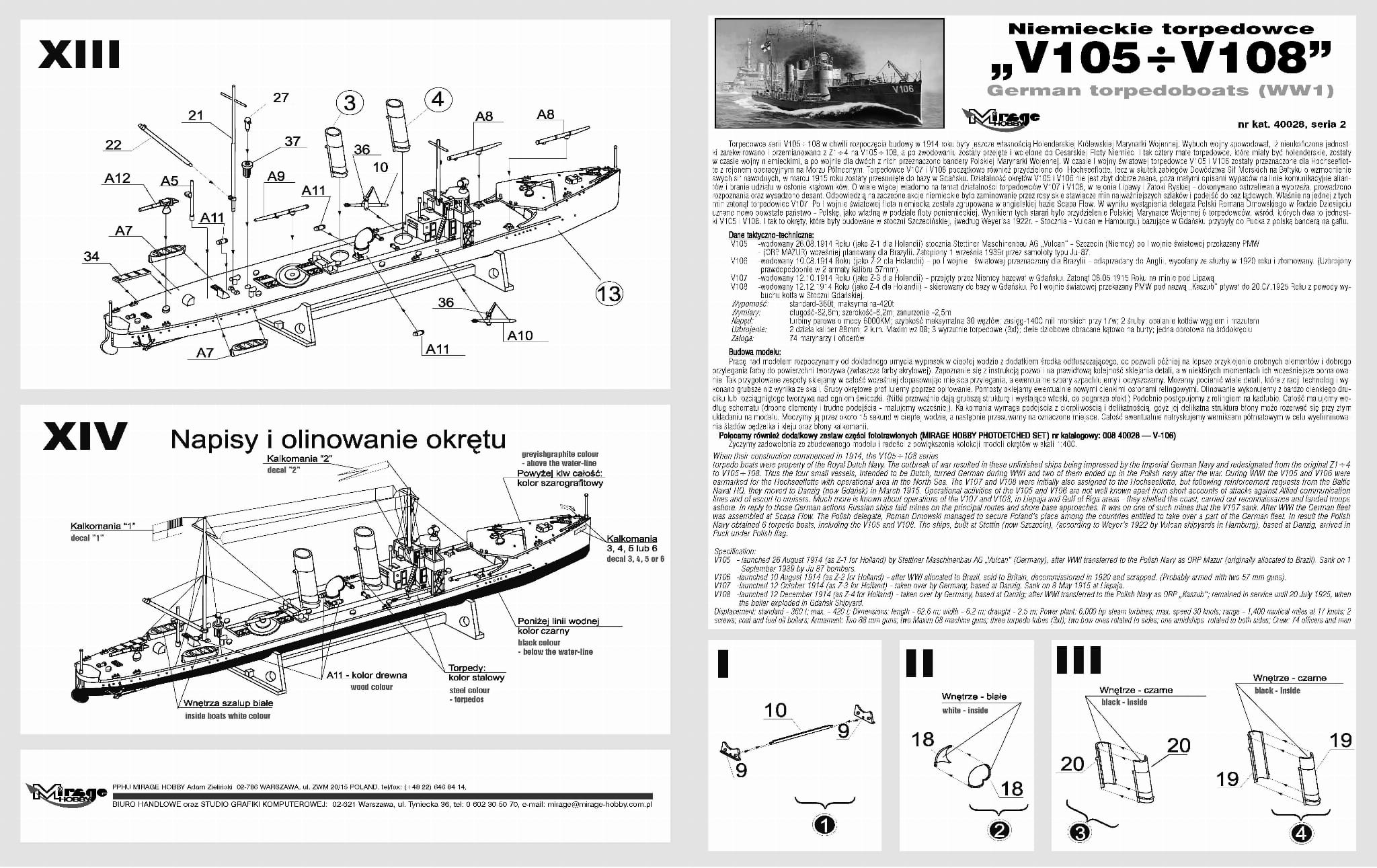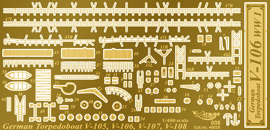 MIRAGE 900001 1:400 Torpedoboot V106, WWI German Torpedo Boat [KIT+ EDITION]