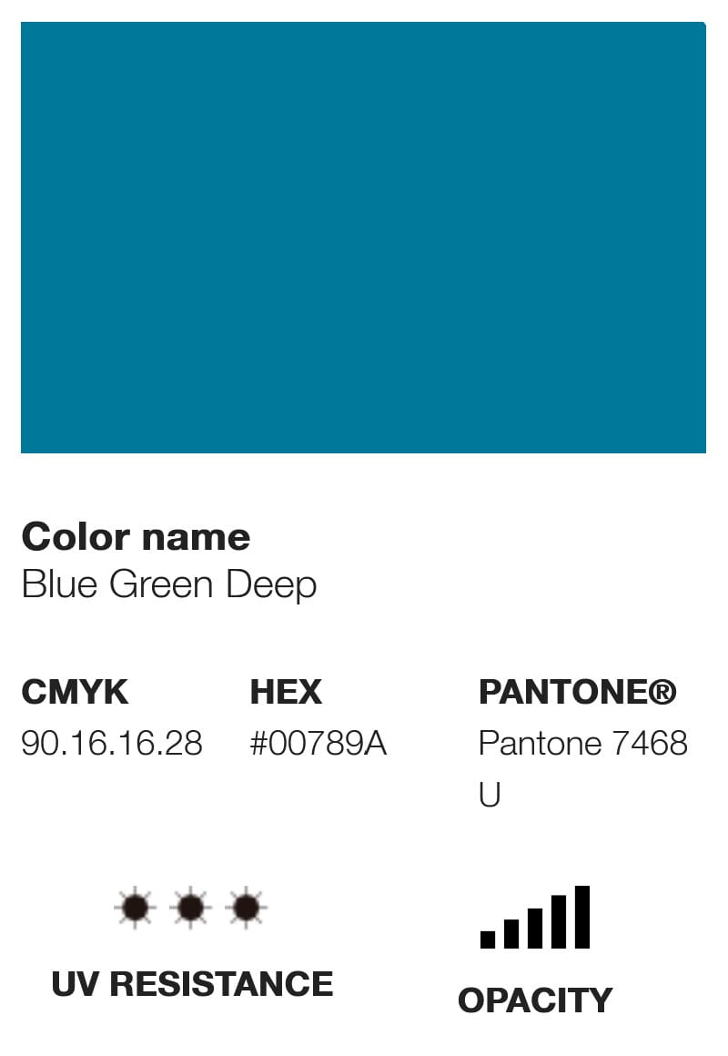 Etykieta farby wyświetla swój odpowiednik koloru w różnych opcjach chromatycznych, takich jak Pantone, RGB i CMYK, a także inne informacje techniczne, takie jak poziom krycia, U.V. odporność i kod pigmentu, który wykorzystuje.