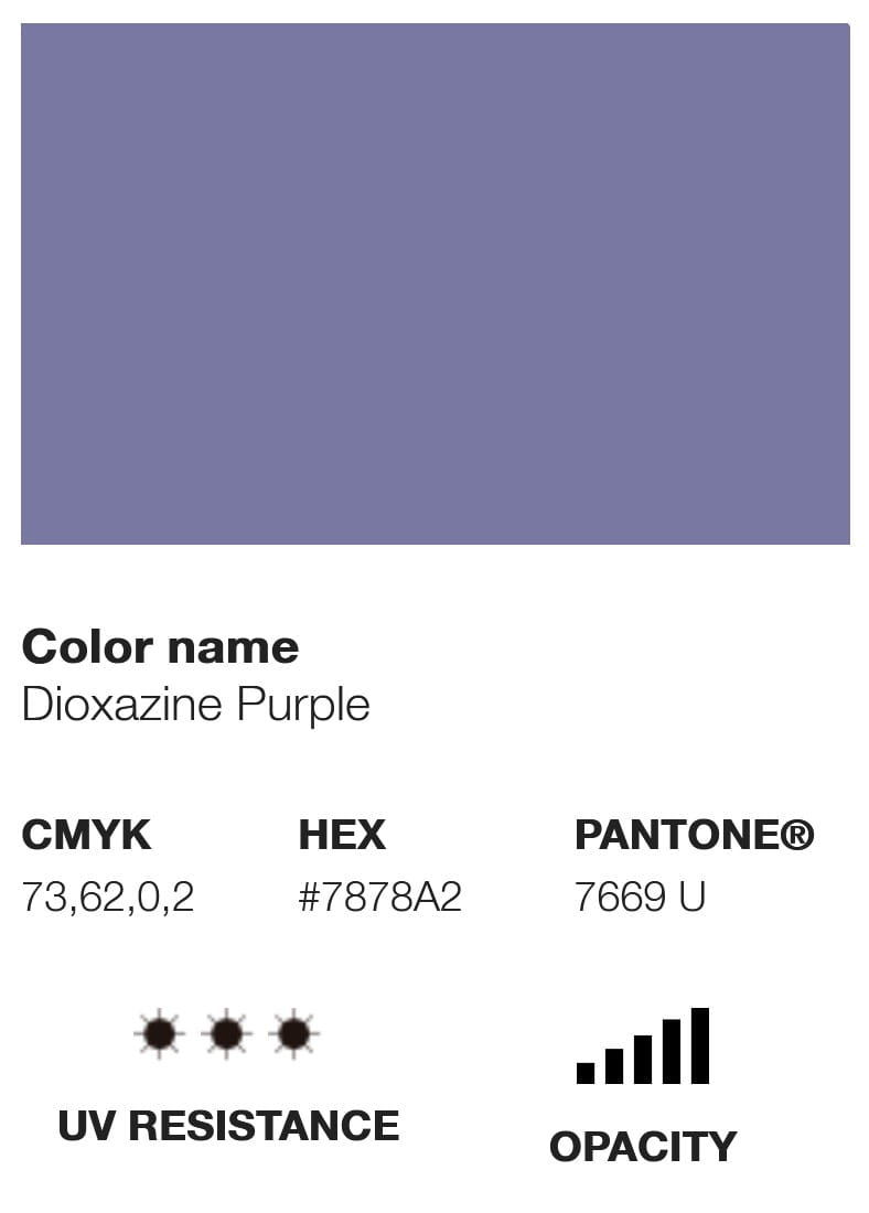 Etykieta farby wyświetla swój odpowiednik koloru w różnych opcjach chromatycznych, takich jak Pantone, RGB i CMYK, a także inne informacje techniczne, takie jak poziom krycia, U.V. odporność i kod pigmentu, który wykorzystuje.