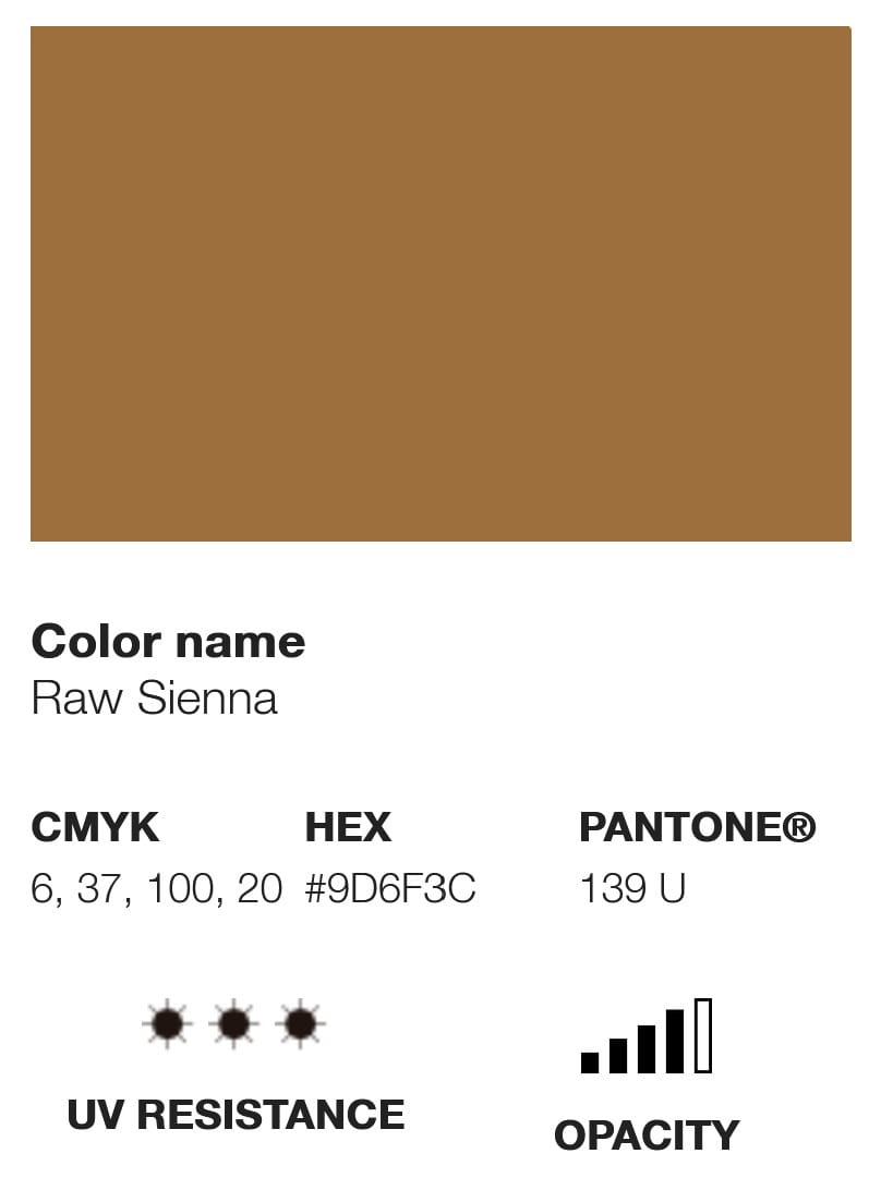 Etykieta farby wyświetla swój odpowiednik koloru w różnych opcjach chromatycznych, takich jak Pantone, RGB i CMYK, a także inne informacje techniczne, takie jak poziom krycia, U.V. odporność i kod pigmentu, który wykorzystuje.