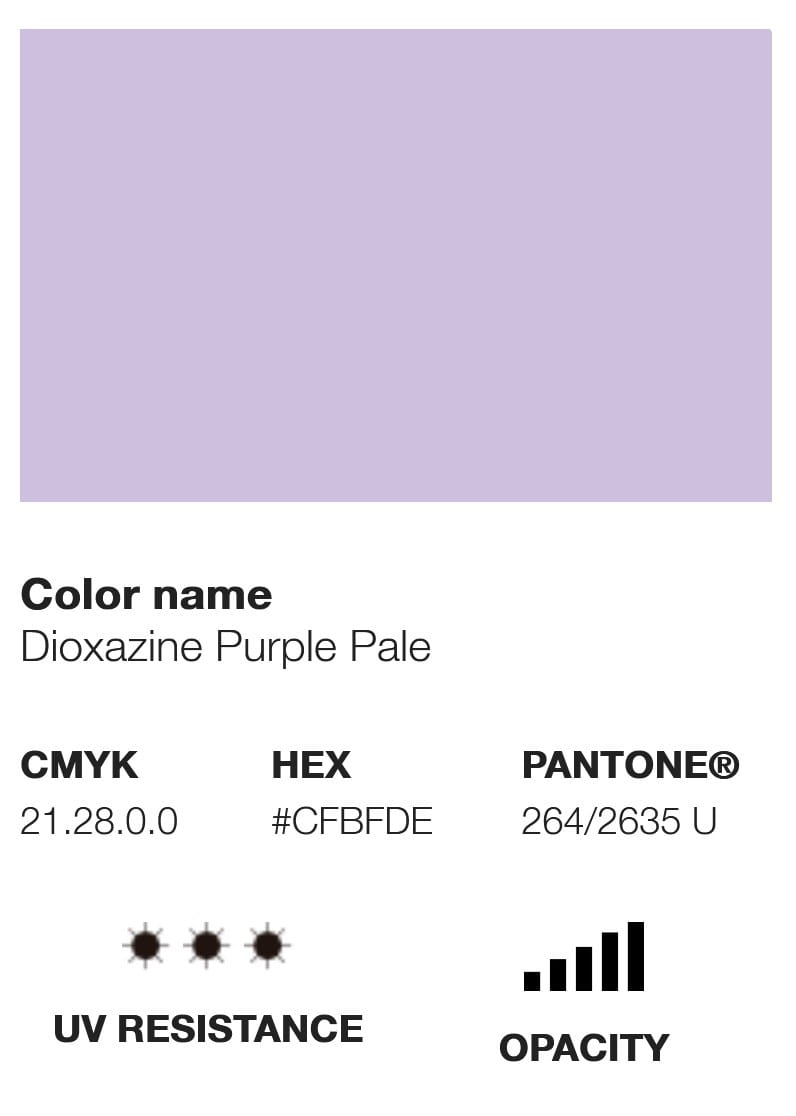 Etykieta farby wyświetla swój odpowiednik koloru w różnych opcjach chromatycznych, takich jak Pantone, RGB i CMYK, a także inne informacje techniczne, takie jak poziom krycia, U.V. odporność i kod pigmentu, który wykorzystuje.