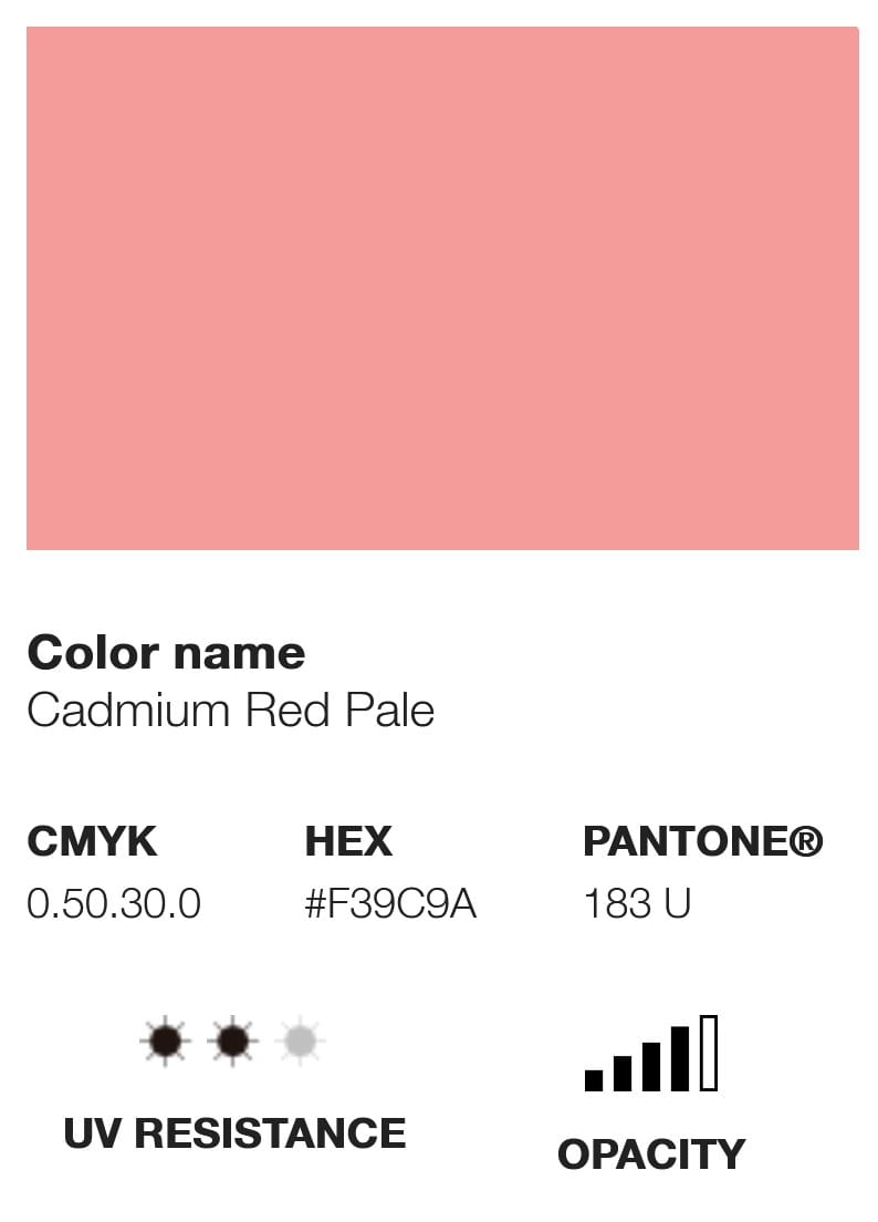 Etykieta farby wyświetla swój odpowiednik koloru w różnych opcjach chromatycznych, takich jak Pantone, RGB i CMYK, a także inne informacje techniczne, takie jak poziom krycia, U.V. odporność i kod pigmentu, który wykorzystuje.