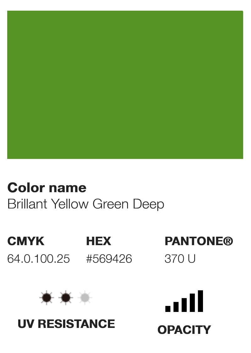 Etykieta farby wyświetla swój odpowiednik koloru w różnych opcjach chromatycznych, takich jak Pantone, RGB i CMYK, a także inne informacje techniczne, takie jak poziom krycia, U.V. odporność i kod pigmentu, który wykorzystuje.
