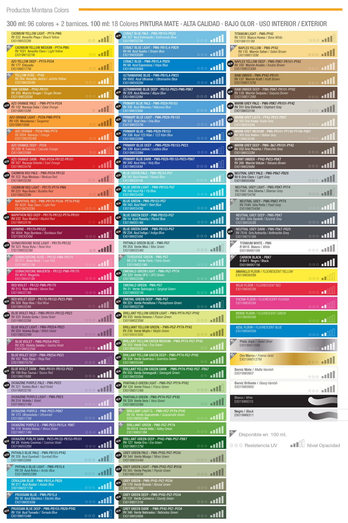 Etykieta farby wyświetla swój odpowiednik koloru w różnych opcjach chromatycznych, takich jak Pantone, RGB i CMYK, a także inne informacje techniczne, takie jak poziom krycia, U.V. odporność i kod pigmentu, który wykorzystuje.
