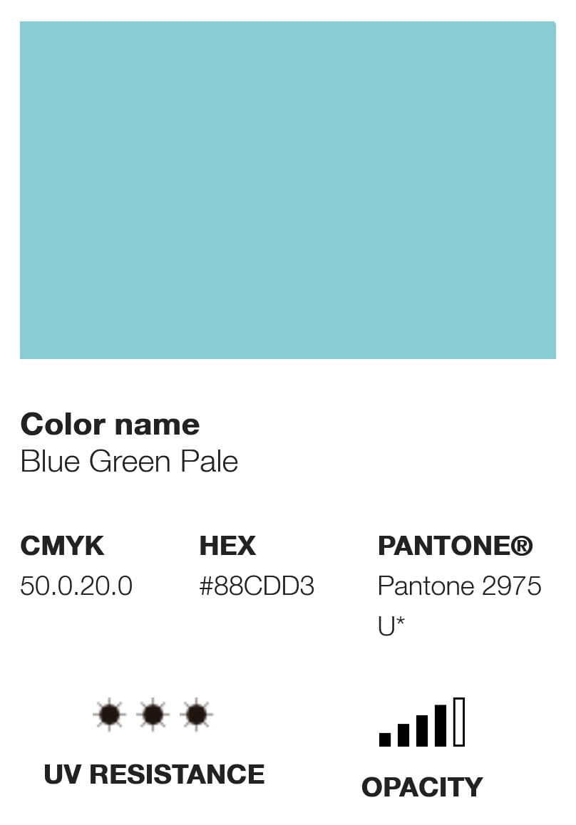 Etykieta farby wyświetla swój odpowiednik koloru w różnych opcjach chromatycznych, takich jak Pantone, RGB i CMYK, a także inne informacje techniczne, takie jak poziom krycia, U.V. odporność i kod pigmentu, który wykorzystuje.