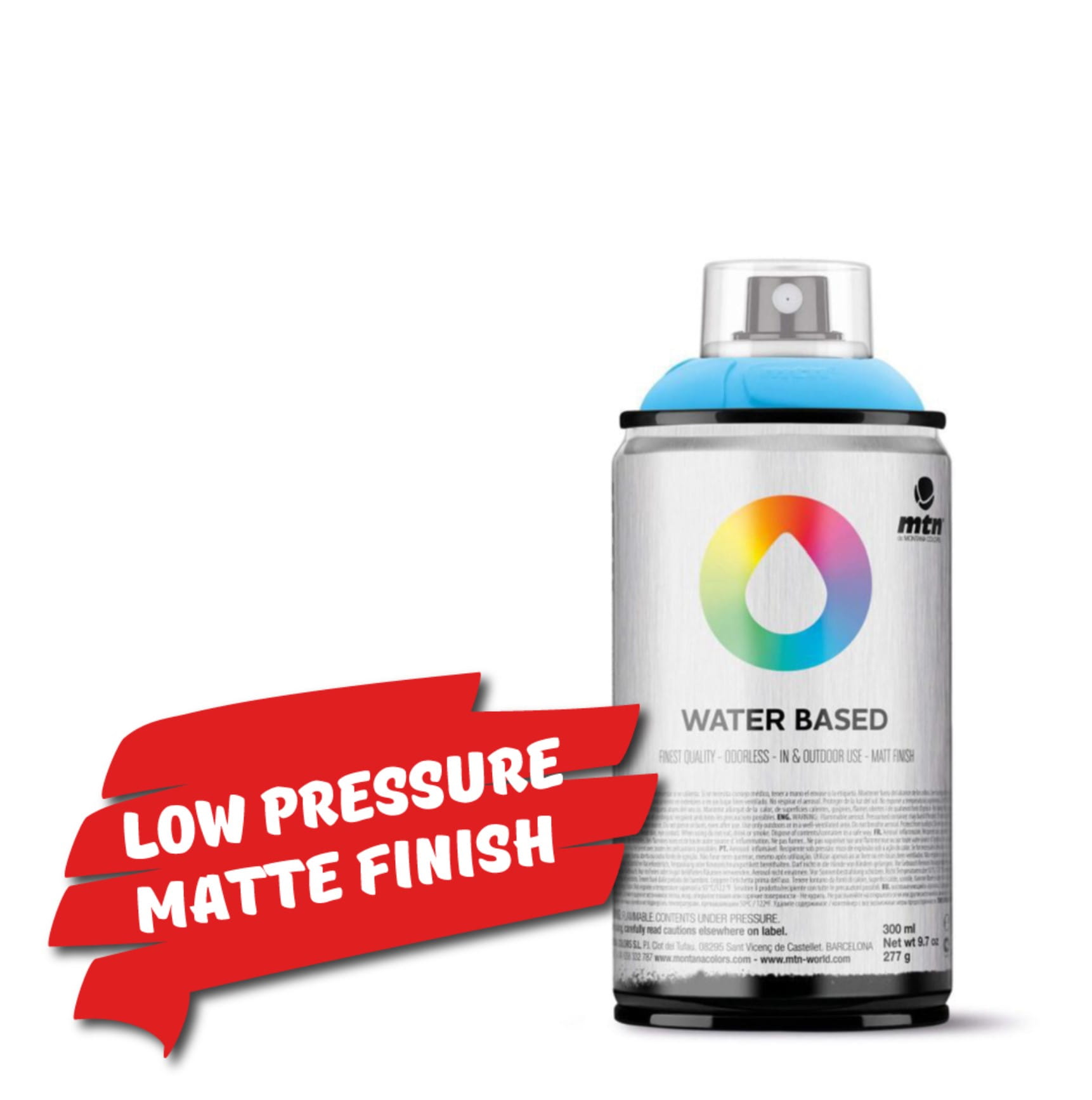Niska zawartość rozpuszczalnika oznacza, że intensywność zapachu jest minimalna, co zmniejsza jego oddziaływanie w zamkniętych przestrzeniach, dzięki czemu MTN Water Based 300 jest idealnym produktem do dekoracji wnętrz lub w pomieszczeniach o małej wentylacji. Ponadto, zanim całkowicie wyschnie, farbę można zmyć wodą lub przerobić innymi technikami, takimi jak użycie mokrego pędzla.