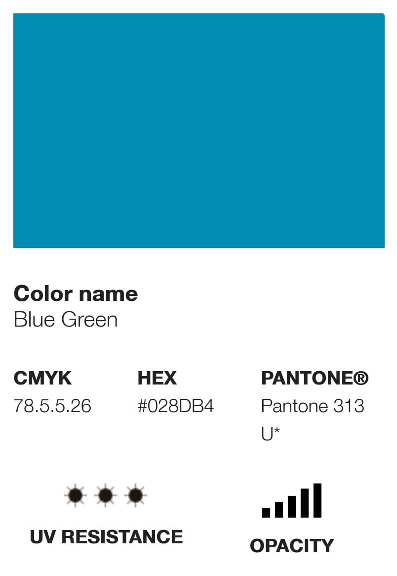 Etykieta farby wyświetla swój odpowiednik koloru w różnych opcjach chromatycznych, takich jak Pantone, RGB i CMYK, a także inne informacje techniczne, takie jak poziom krycia, U.V. odporność i kod pigmentu, który wykorzystuje.