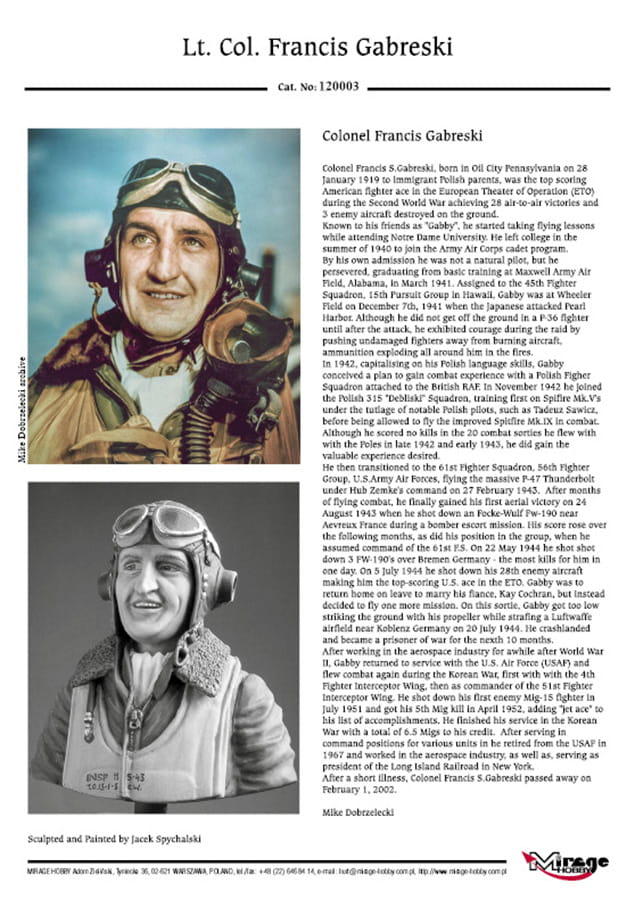 Mirage 120003 200mm Popiersie Lt. Col. Francis GABRESKI (July 1944) [model żywiczny]