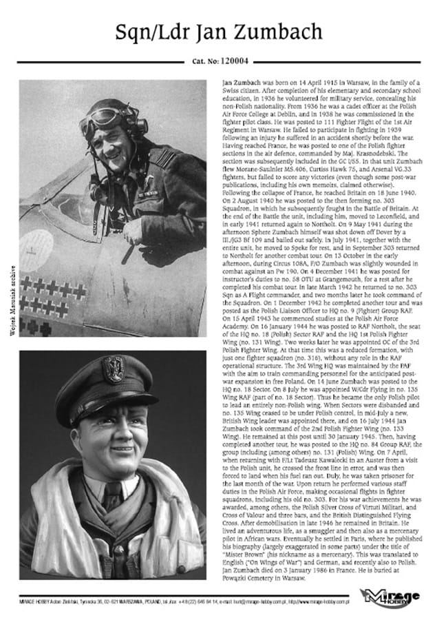 Mirage 120004 200mm Popiersie Sqn/Ldr Jan ZUMBACH (November 1944) [model żywiczny]