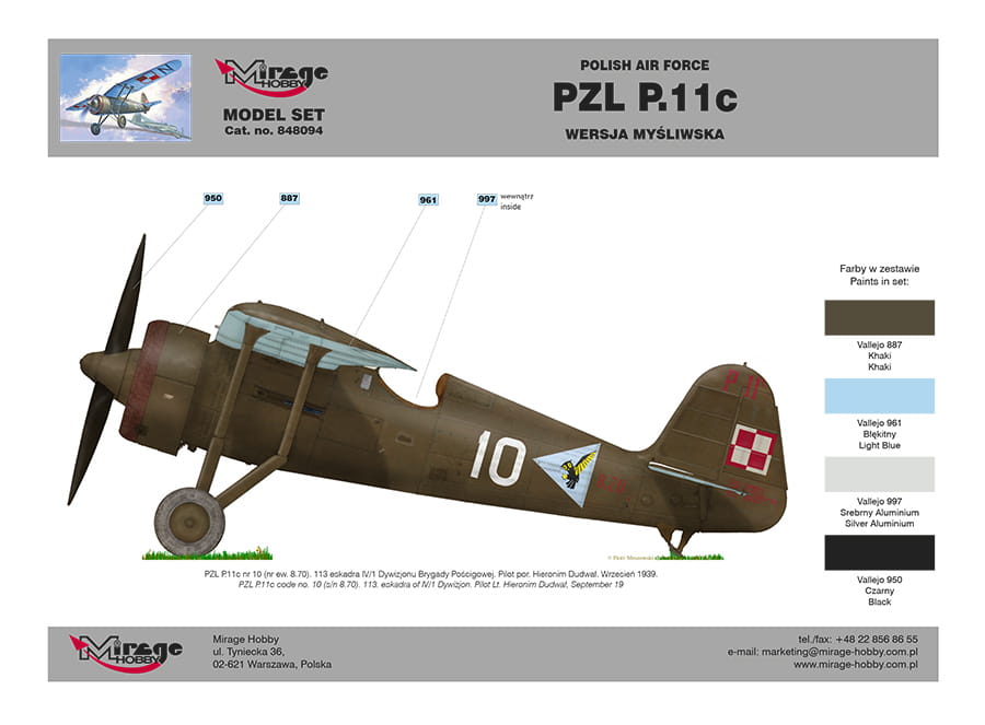 Mirage 848094 1/48 PZL P.11c Polski samolot myśliwski z II wś [Model Set]