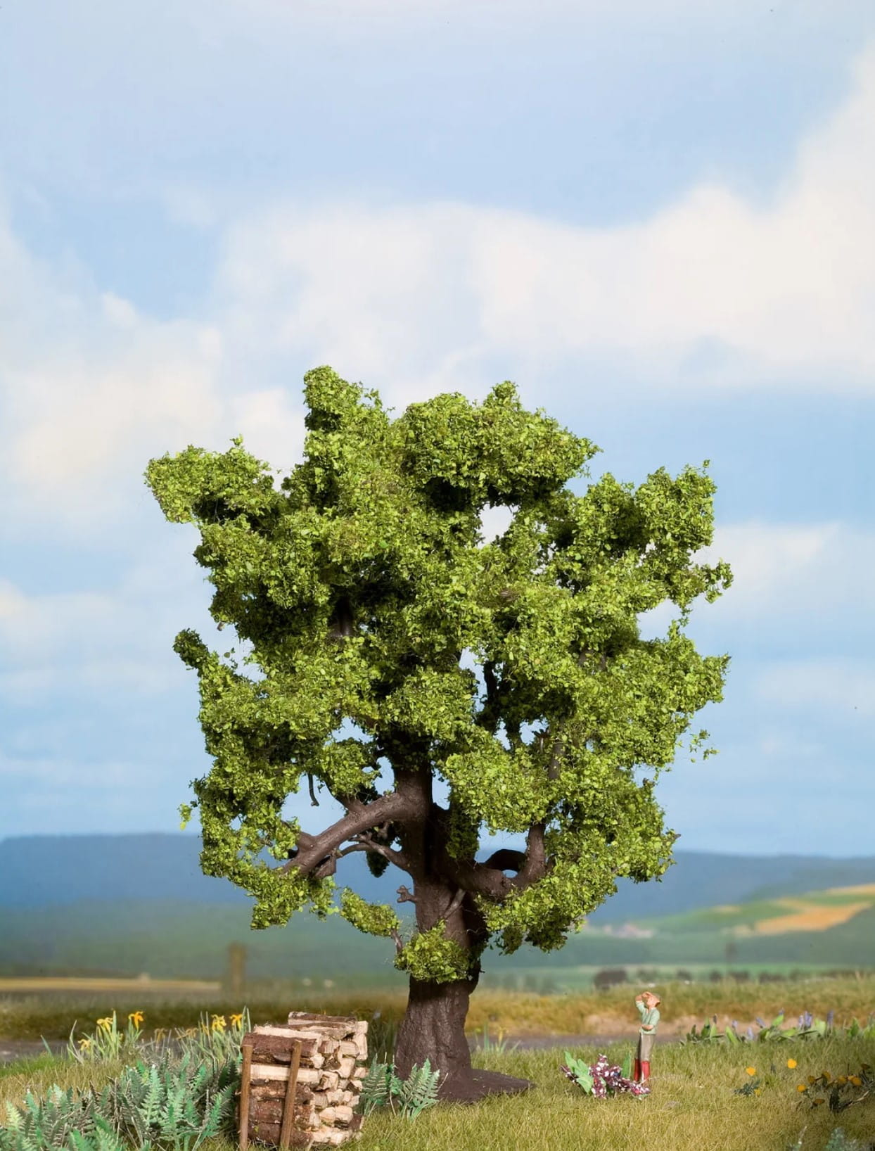 Drzewko NOCH „Oak Tree” jest idealny do tworzenia scen wiejskich na modelowym krajobrazie jeszcze bardziej realistycznym i idyllicznym. W przyrodzie jest dużo drzew. Nadają krajobrazowi idylliczny i realistyczny wygląd. Dlatego nie powinno ich zabraknąć w żadnym modelowym krajobrazie, który ma być jak najbardziej realistyczny. Wprowadź niezbędny szczegół do swojego modelowego krajobrazu za pomocą „Dębu”. Oprócz buków, brzóz, lip, kasztanowców i wielu innych drzew „Dąb” tworzy krajobraz o jeszcze większym realizmie. Czy to w ogrodzie, na polu, w parku czy na farmie, bardzo wszechstronny „Dąb” znajdzie idealne miejsce na każdym modelowym krajobrazie wśród innych gatunków drzew.