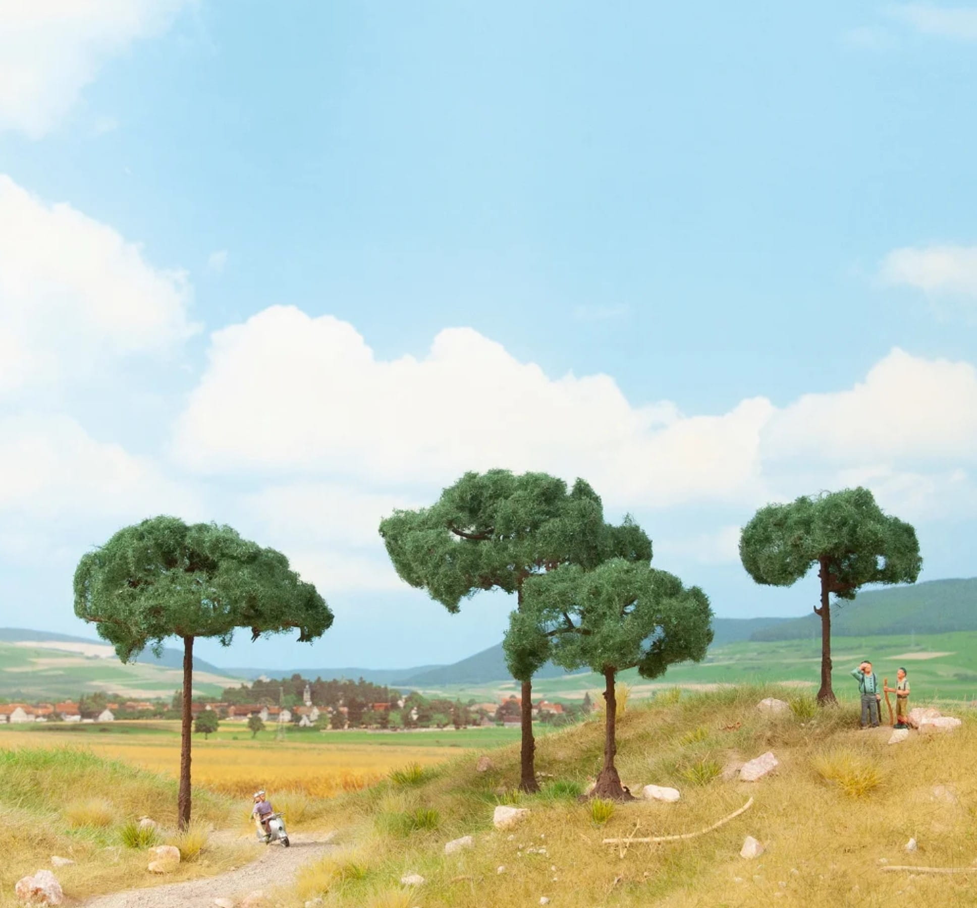 Stwórz swój własny mały śródziemnomorski krajobraz na modelowym krajobrazie. Wspaniały śródziemnomorski styl tchnie się w Twój modelowy krajobraz dzięki sosnom kamiennym NOCH. Sosny skalne dają poczucie wakacyjnego nastroju, przypominając pachnące lasy sosnowe i łagodny szum morza.