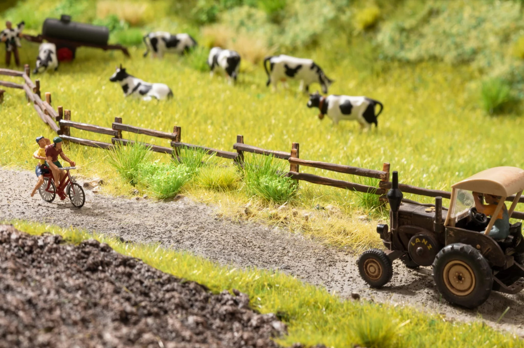 Choć może to zabrzmieć prozaicznie, proste pobocza drogi nie są tak łatwe do idealnego odtworzenia w modelu. Podczas jednego z kolejnych spacerów obserwuj, co kiełkuje lub rośnie wokół Ciebie! Będziesz zaskoczony różnorodnością. Nie tylko pobocza, ale także nasypy i pobocza można doskonale zaprojektować za pomocą Zestawu startowego Roślinność! Oprócz żwiru, za pomocą którego można zaprojektować ścieżkę, zestaw zawiera odpowiednio dużo traw, kępek i rozproszonego materiału.