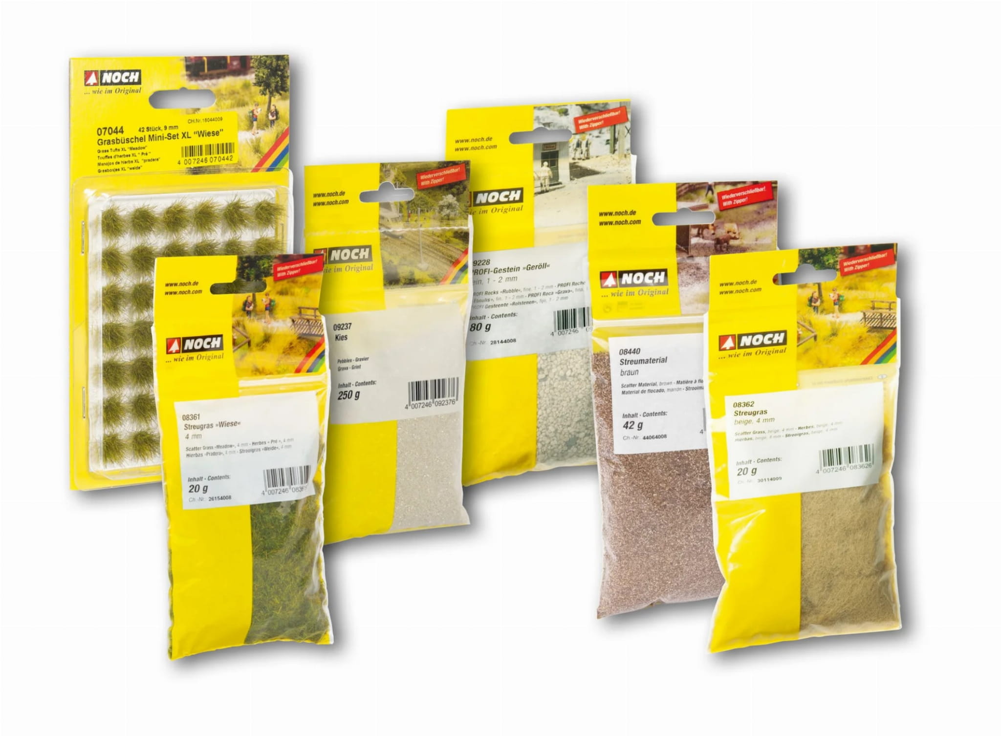 Zespół NOCH dołożył wszelkich starań, aby w każdym Zestawie Startowym Roślinności zaprezentować jak najwięcej produktów. Ilości są wystarczające dla mniejszych obszarów. Ponieważ numery pozycji są podane na wszystkich opakowaniach i produktach, poszczególne pozycje można dokupić w dowolnym momencie.