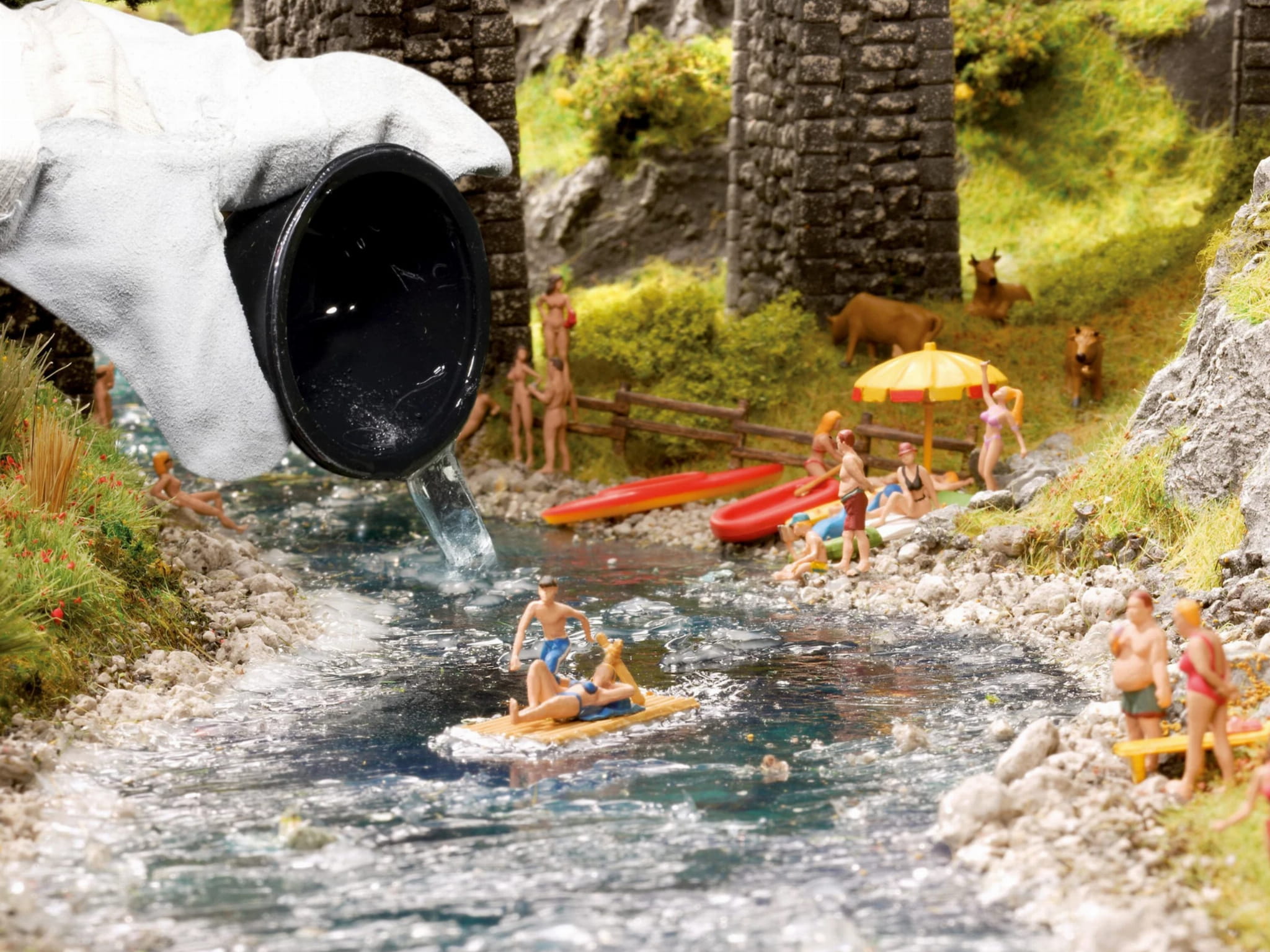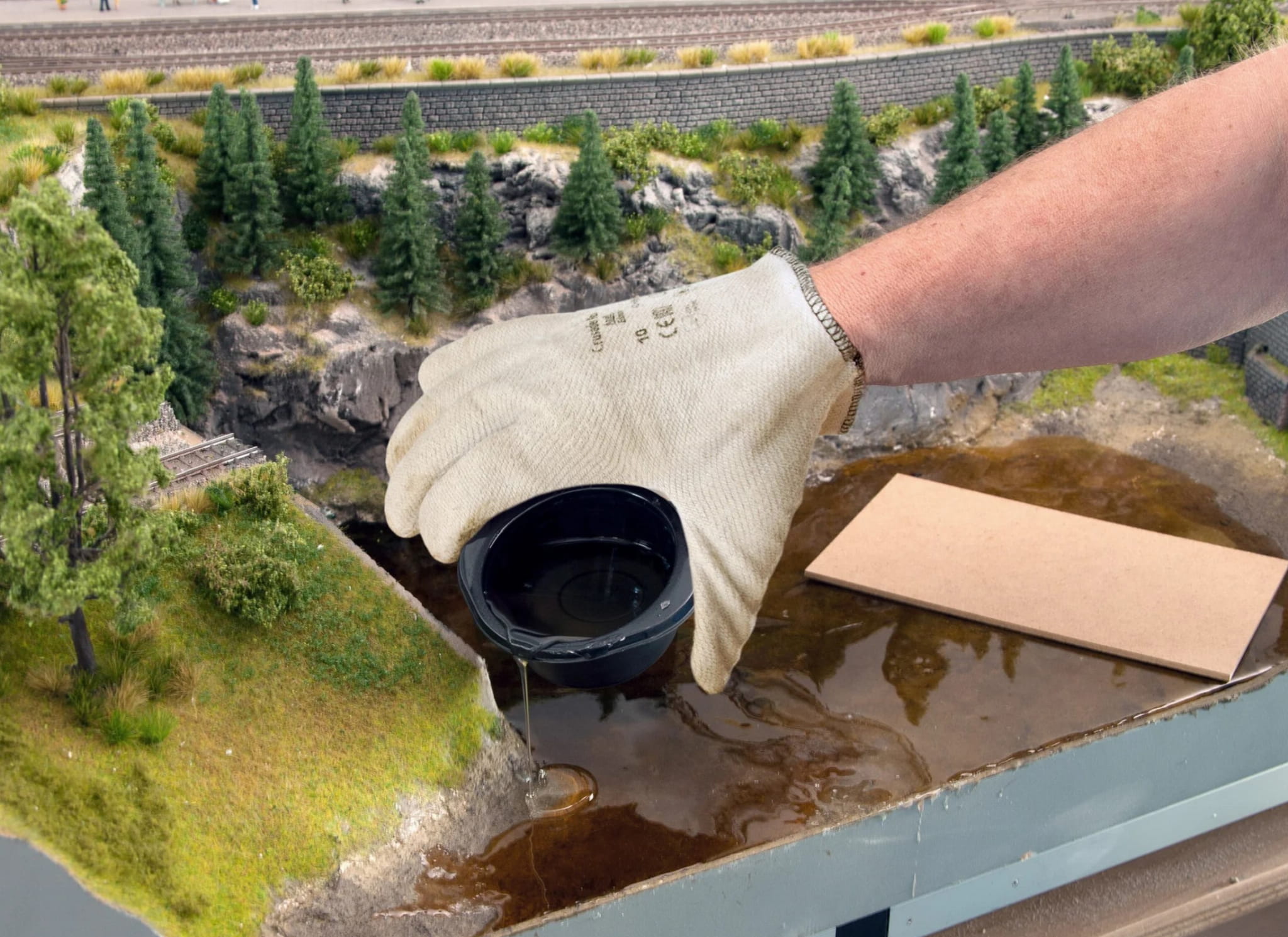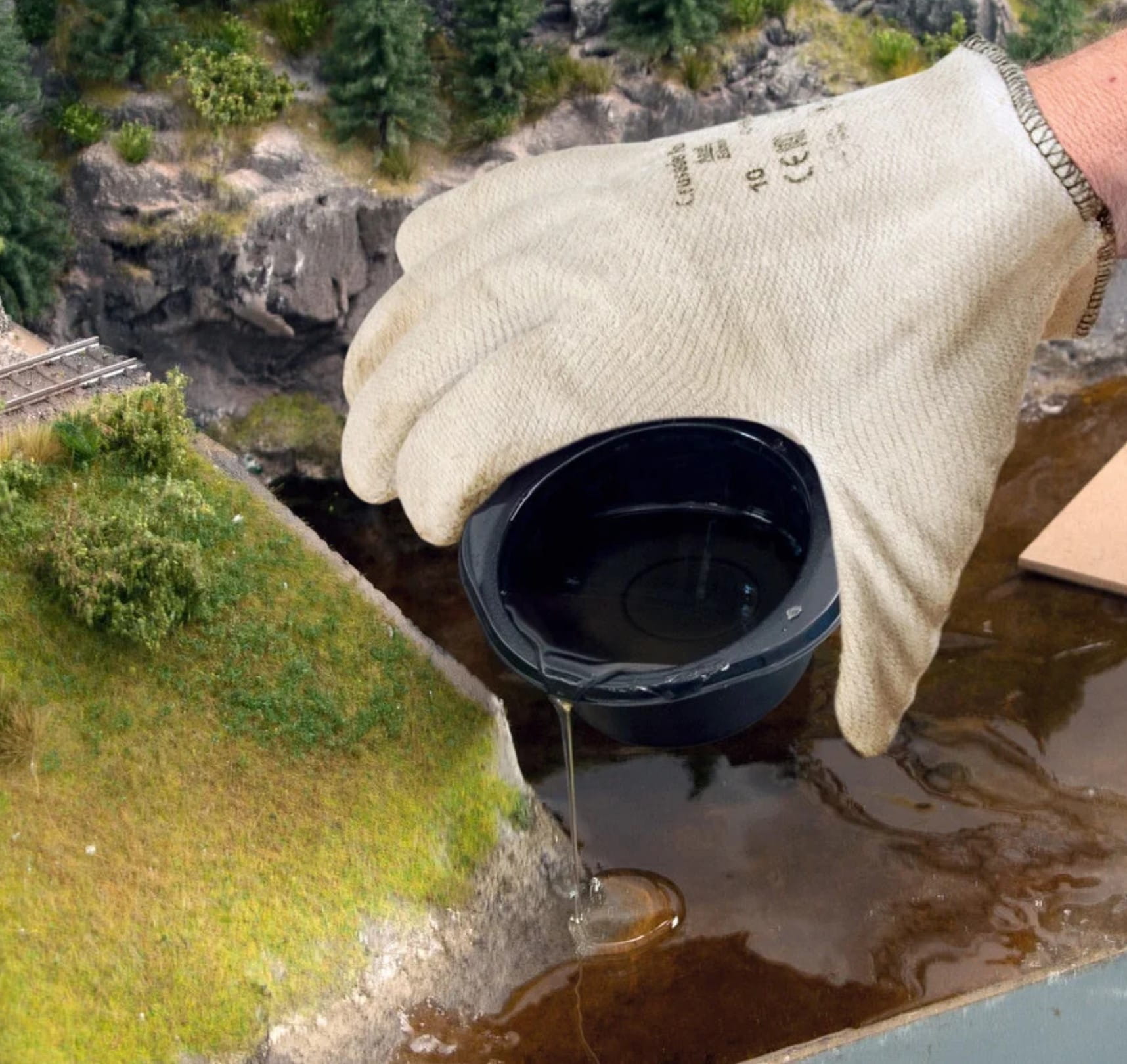 Stopione Water-Drops® „easy” wlewa się następnie do przygotowanego jeziora lub strumienia i całkowicie twardnieje w ciągu kilku minut. Jeśli nie zużyjesz od razu całej ilości wody modelarskiej, po prostu pozwól płynowi Water-Drops® „easy” ostygnąć w kubku i przechowuj sztuczną wodę w pokoju hobbystycznym do następnego użycia. Water-Drops® można stopić i użyć ponownie tak często, jak to konieczne. Naprawdę praktyczne!