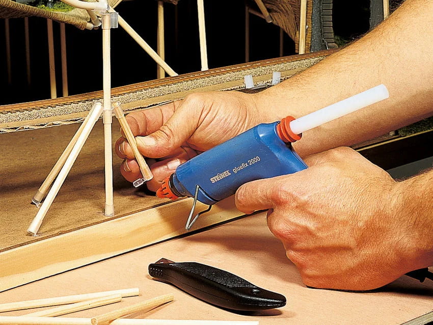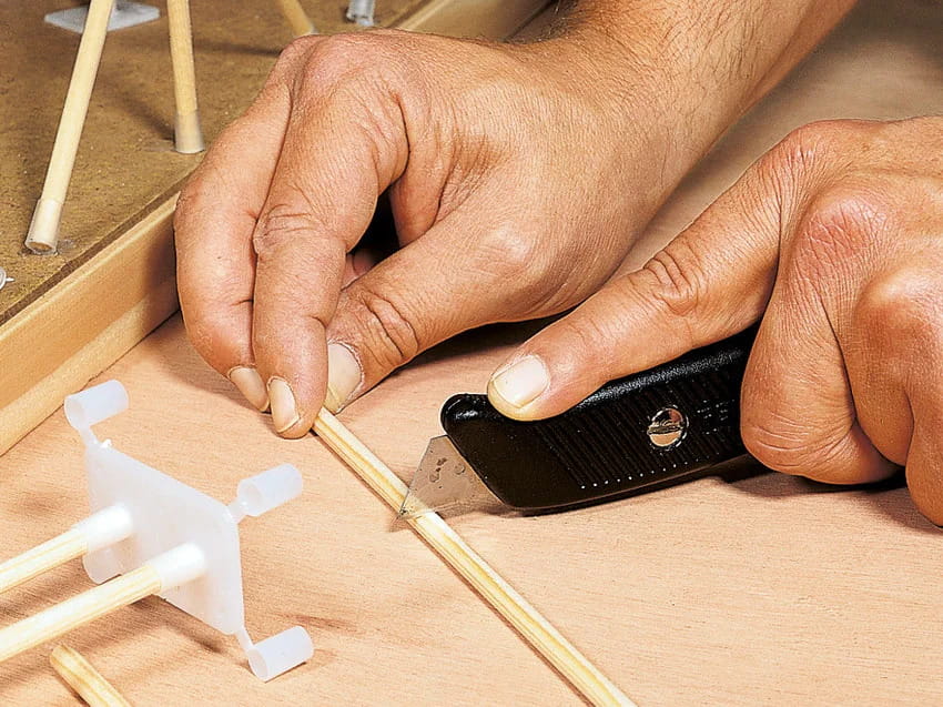 Nie potrzebujesz do tego żadnego doświadczenia manualnego, a jedynie kilku narzędzi: nożyczek, noża rzemieślniczego, piły wstecznej, młotka i pistoletu do klejenia na gorąco. W przeciwieństwie do konwencjonalnego podejścia, zaczynasz od wytyczenia torów.