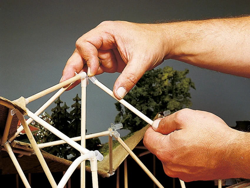 Podstawą systemu są dwu- do pięciokierunkowe elementy łączące wykonane z elastycznego tworzywa sztucznego, w które wkładane są okrągłe słupki w żądanym kształcie. Okrągłe tyczki są przycinane na żądaną długość i składane.