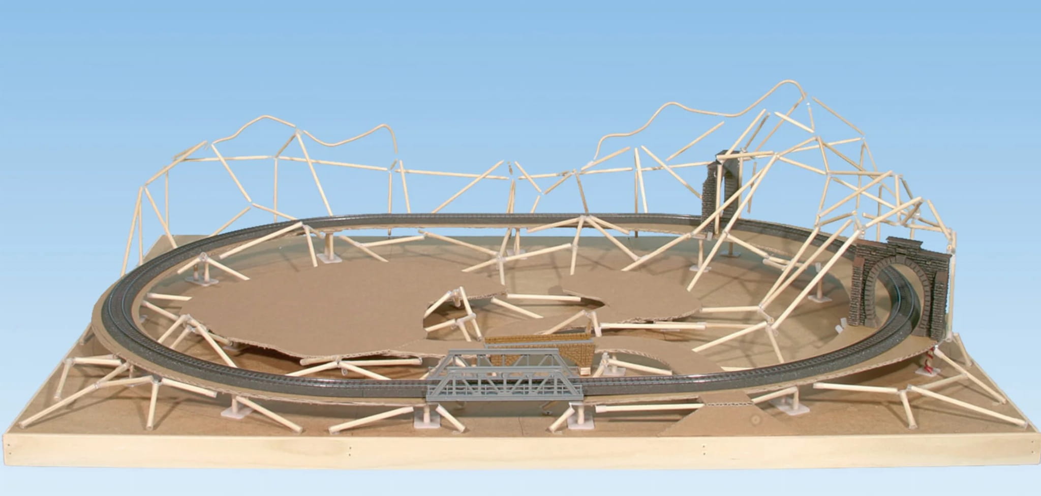 Po jeździe próbnej zaczynasz projektować krajobraz – nad i wokół układu torów. Pierwszą rzeczą, którą robisz, jest ustawienie struktury przypominającej namiot. Ponieważ okrągłe słupki są wkładane tylko w elementy łączące, konstrukcję można w każdej chwili poprawić i zmienić.