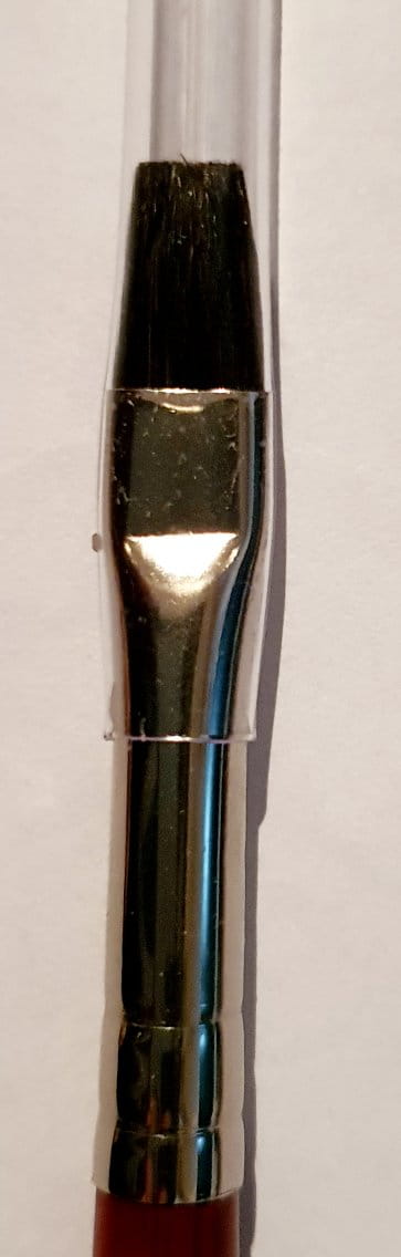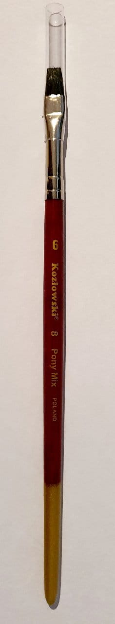Pędzel płaski, mieszanka włosia pony, niklowana skuwka, krótki malowany trzonek. Polecany do farb wodnych.