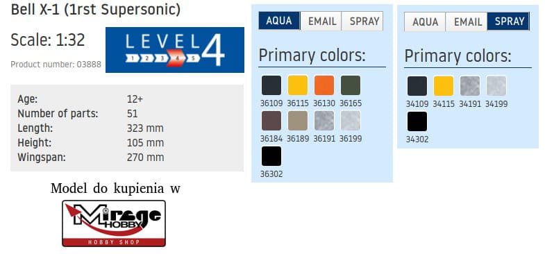 REVELL 03888 1:32 BELL X-1 SUPERSONIC AIRCRAFT
