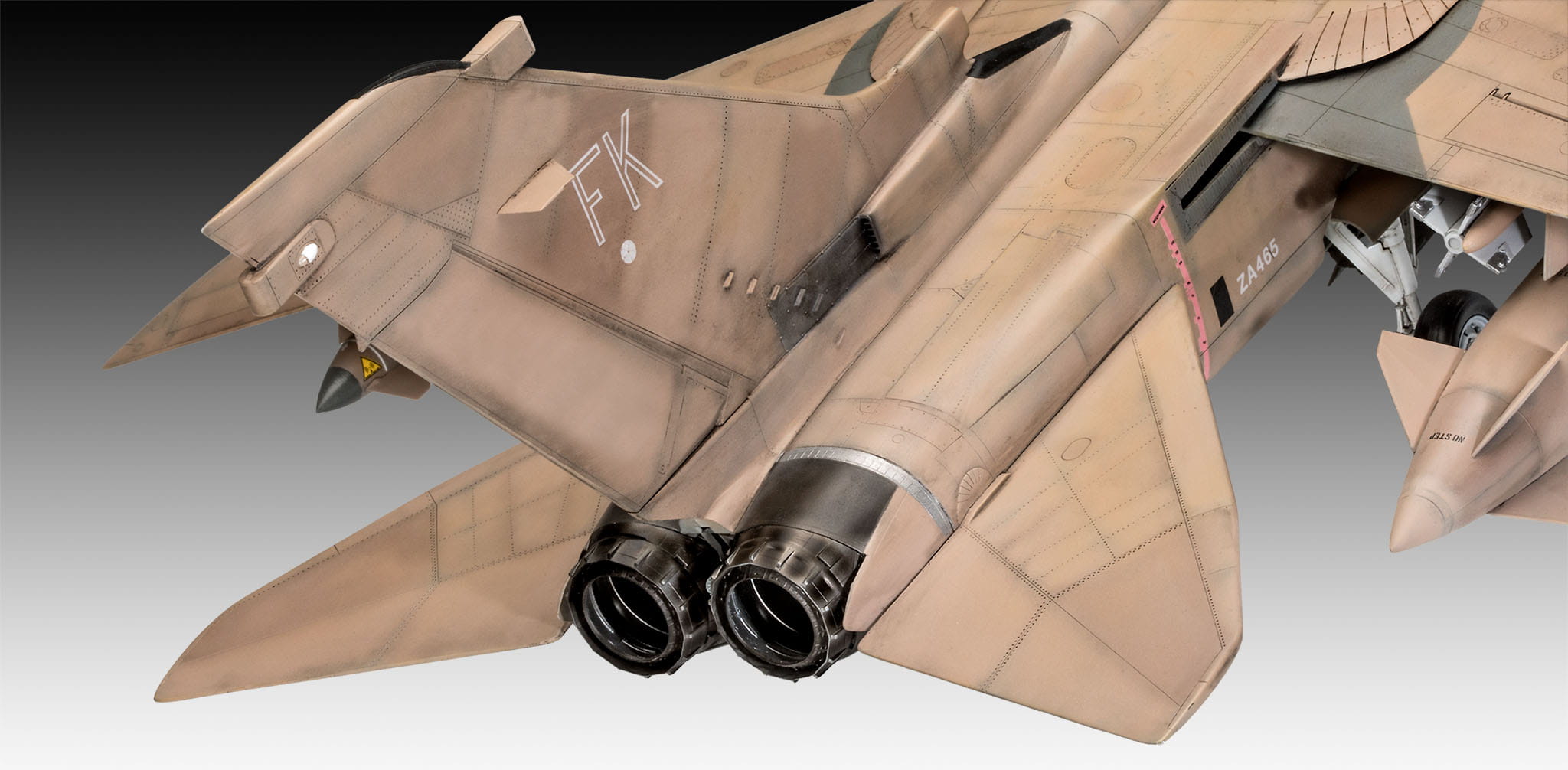 Replika modelu Tornado GR.1, skrzydłowego myśliwca przeznaczonego do ataków naziemnych. Ta wersja była używana przez RAF, a pierwsze misje bojowe miały miejsce podczas wojny w Zatoce Perskiej w 1991 roku.