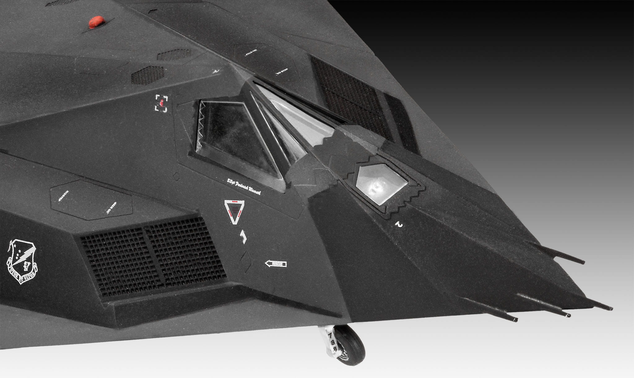 Łatwy do sklejenia zestaw konstrukcyjny modelu Lockheed F-117, pierwszego myśliwca stealth na świecie. Jest używany głównie do misji nocnych. Wielopłaszczyznowa konstrukcja pomaga F-117 pozostać niewykrytym przez radar.