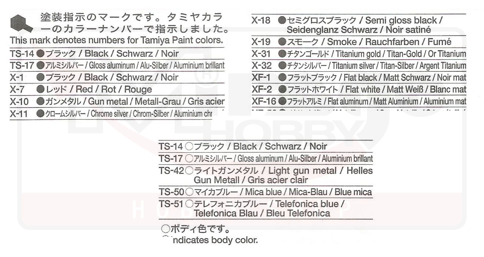 1/12 scale, Overall length: 178mm, Overall width: 71mm. From its unique shape to the engine, this model accurately reproduces the real Hayabusa. Parts such as upper cowling and tank are molded as one piece. For engine, cowling, and swing arms screws are used for reliable attachment to the frame. Metallic stickers are used to increase realism of the front fork. Tires are made of real rubber.
